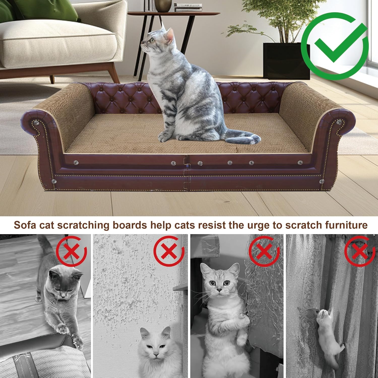 Scratching Sofa, Couch Shaped Thick Scratching Cardboard, Lounge Bed for Indoor Rest&Play, Sofa Scratcher Pad (Brown, 39.4" L X 14" W X 11" H)
