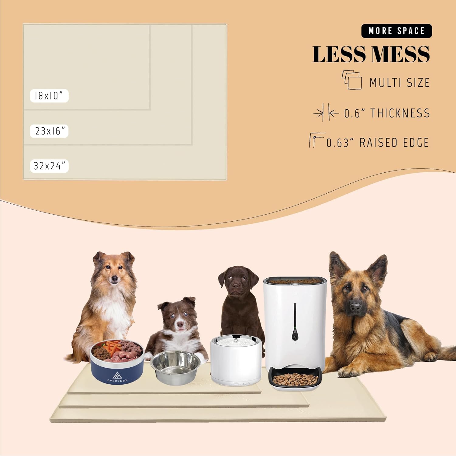 - Perfect for Medium to Large Breeds: Need a premium dog bowl mat for medium and small breeds? Elevate feeding affordably with AVERYDAY's 32x24'' pet bowl mat - where quality meets affordability for your furry friends