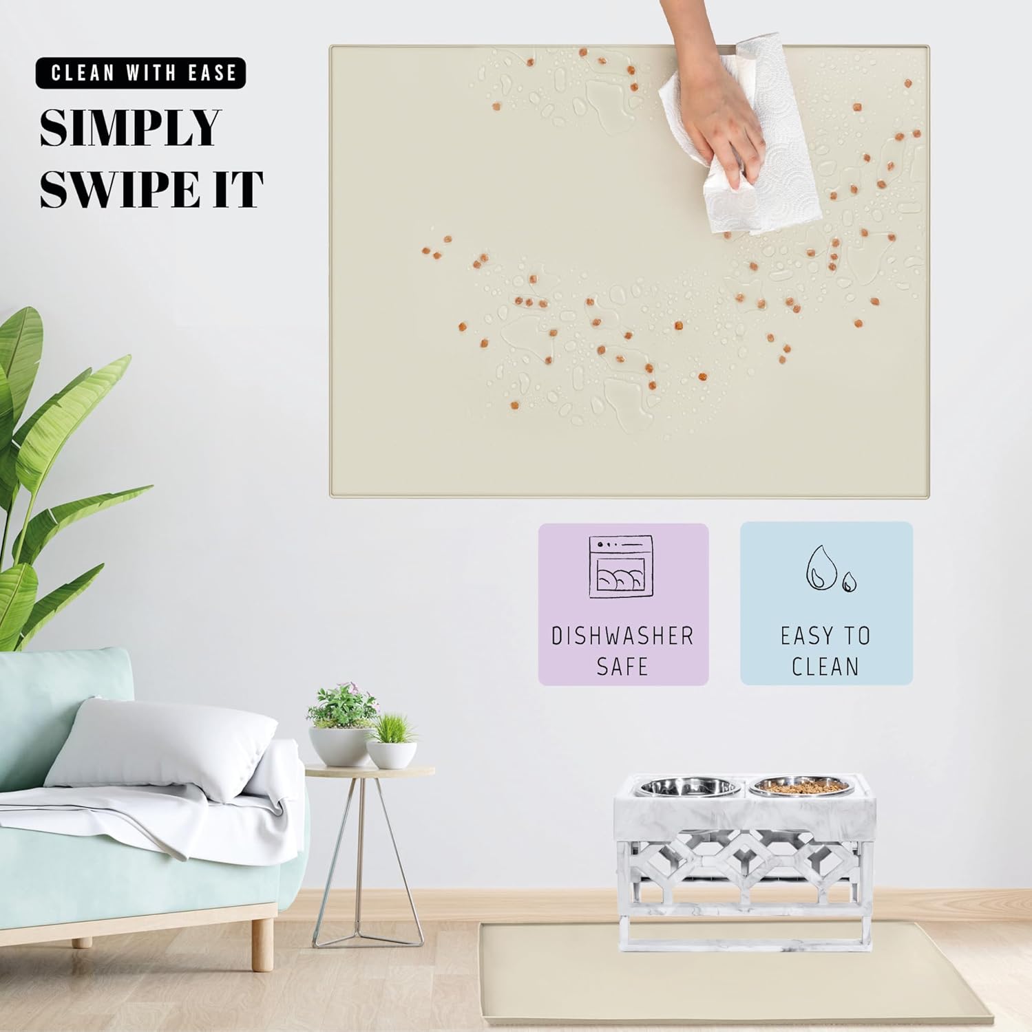 - Hassle-Free Cleanup: Want to reduce cleaning time? Our high durability dog food mat large for saves you the hassle. Just wipe it with a paper towel every 3-5 days, and say goodbye to daily cleanup chores
