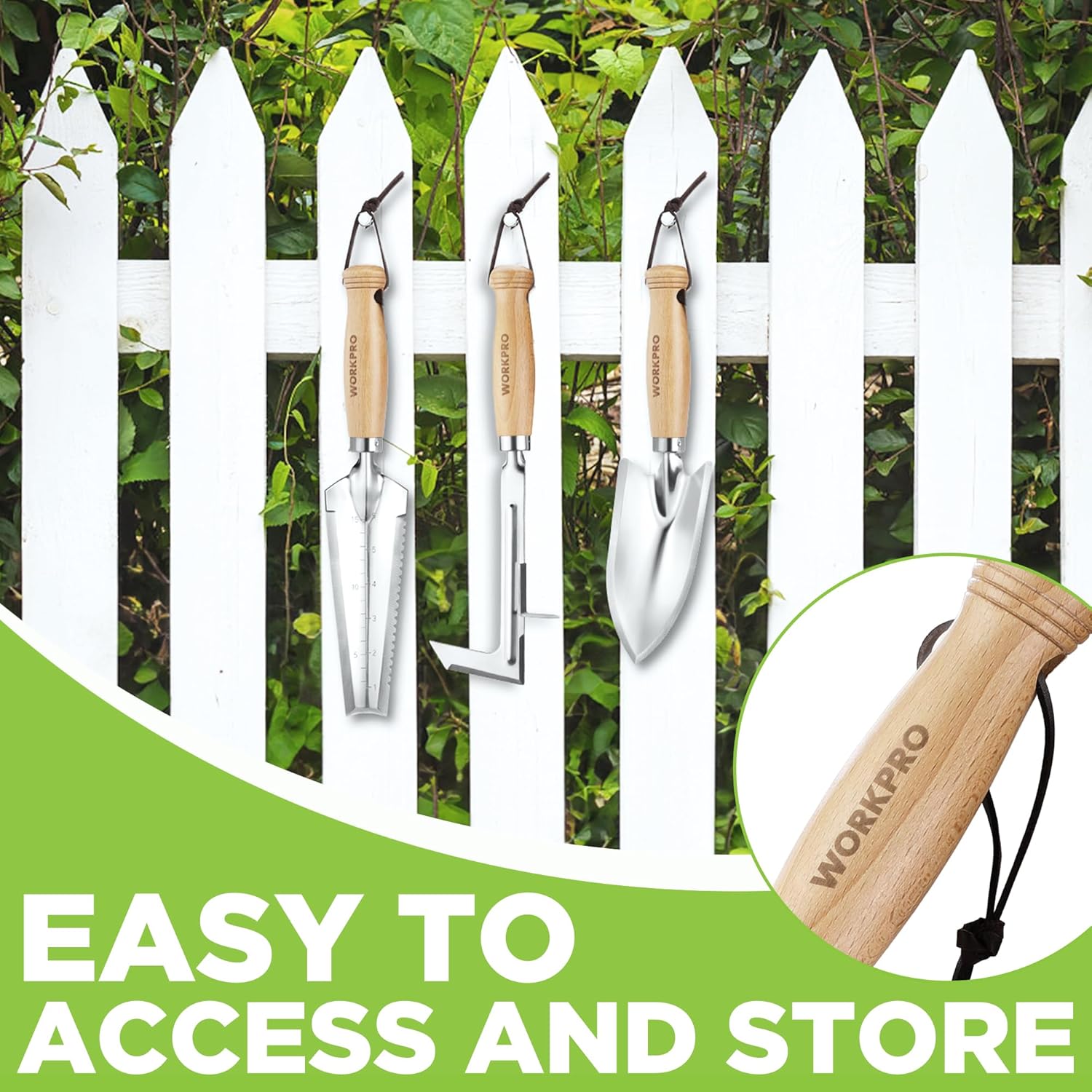 WORKPRO Garden Tool Set, 3 Pcs Gardening Hand Tools with Wood Handle, Weed Puller, Crack Weeder, Hand Trowel, for Planting, Digging, Weeding, Ideal Gardening for Women & Men