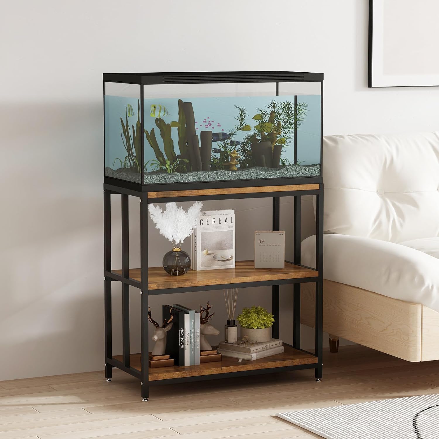 - Multi-Functional: This fish tank with stand is not just a stand - In addition to supporting your aquarium, reptile tank or fish tank, the metal tank stand can be used as a storage unit for your aquarium supplies, and can even place decorative items, books and plants, make your home neat and organizer.
