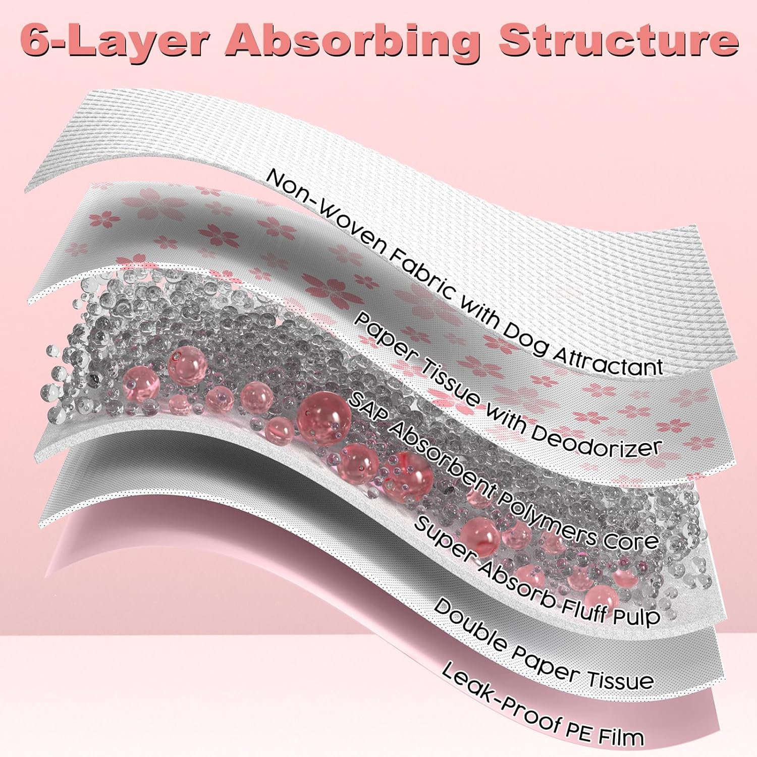MIZOK Puppy Pads 22"x 22" with Leak-Proof Quick-Dry Design Pee Pads for Dogs Potty Training, 6-Layer Standard Absorbency Dog Pee Pads Regular Size, Pink Cherry Blossom Pattern (50 Counts)