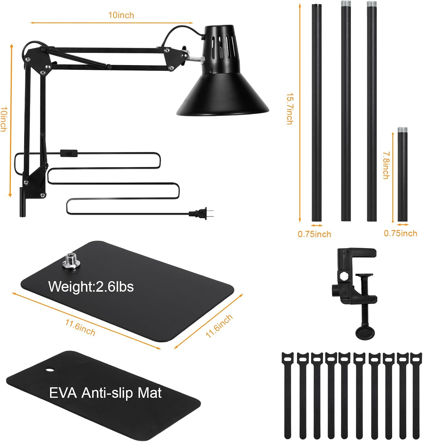 - 【Multi-angle Adjustable Swing Arm】:The reptile light stand can adapt to the lighting needs of different pets. The bearded dragon light is equipped with a unique 180-degree foldable swing arm and can rotate 360 degrees. The angle and extended width of the reptile lamp can be easily and flexibly adjusted. Whether you want to extend your heat lamp fixture to a specific angle or position, you can easily do it to make your reptile more comfortable!