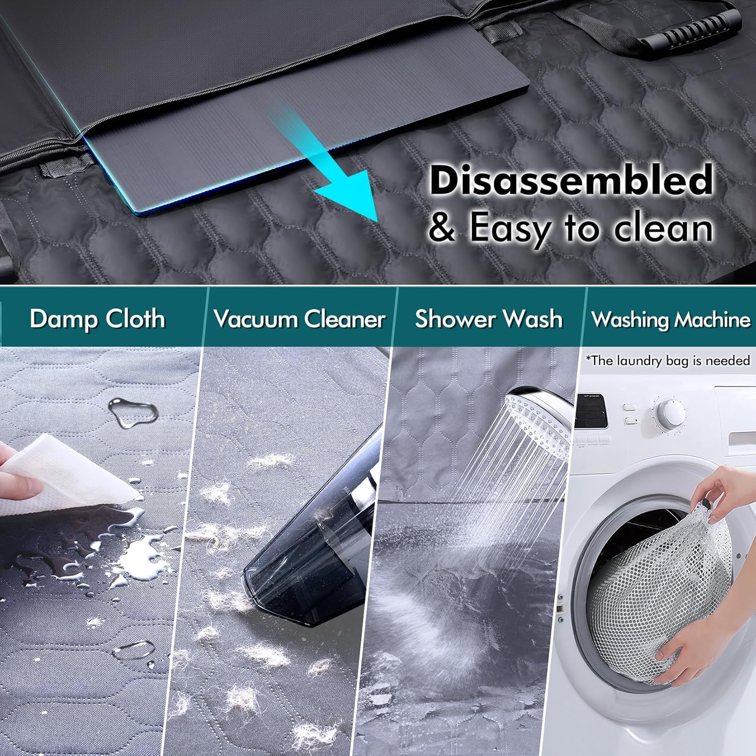 - Waterproof, Scrath-Resistant, Non-Slip: Chumajor dog hammock for car is crafted from 600D Oxford fabric using advanced hot pressing techniques. It provides ultimate protection for your dog car seat, shielding it from scratches, dirt, wet muddy paws, and dog hair. Cleaning is a breeze - simply wipe with a damp cloth or use a vacuum cleaner to remove any stains or debris, ensuring your car remains fresh and spotless