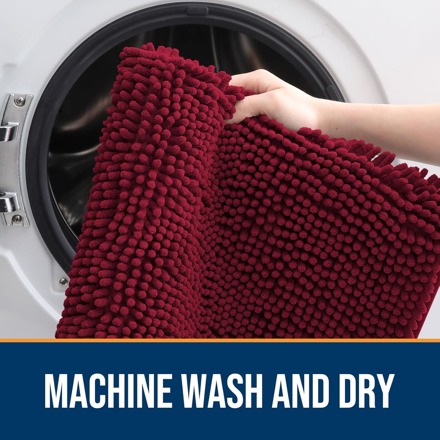 OLANLY Dog Door Mat for Muddy Paws 59x35, Absorbs Moisture and Dirt, Absorbent Non-Slip Washable Doormat, Quick Dry Chenille Mud Mat for Dogs, Entry Indoor Entryway Carpet for Inside Floor, Burgundy