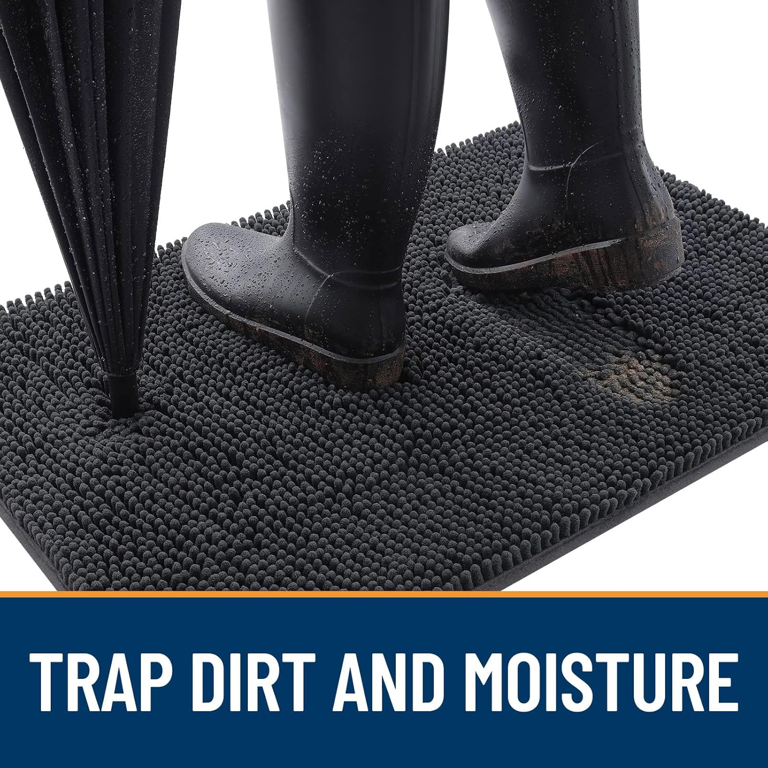 OLANLY Dog Door Mat for Muddy Paws 59x35, Absorbs Moisture and Dirt, Absorbent Non-Slip Washable Doormat, Quick Dry Chenille Mud Mat for Dogs, Entry Indoor Entryway Carpet for Inside Floor, Dark Grey