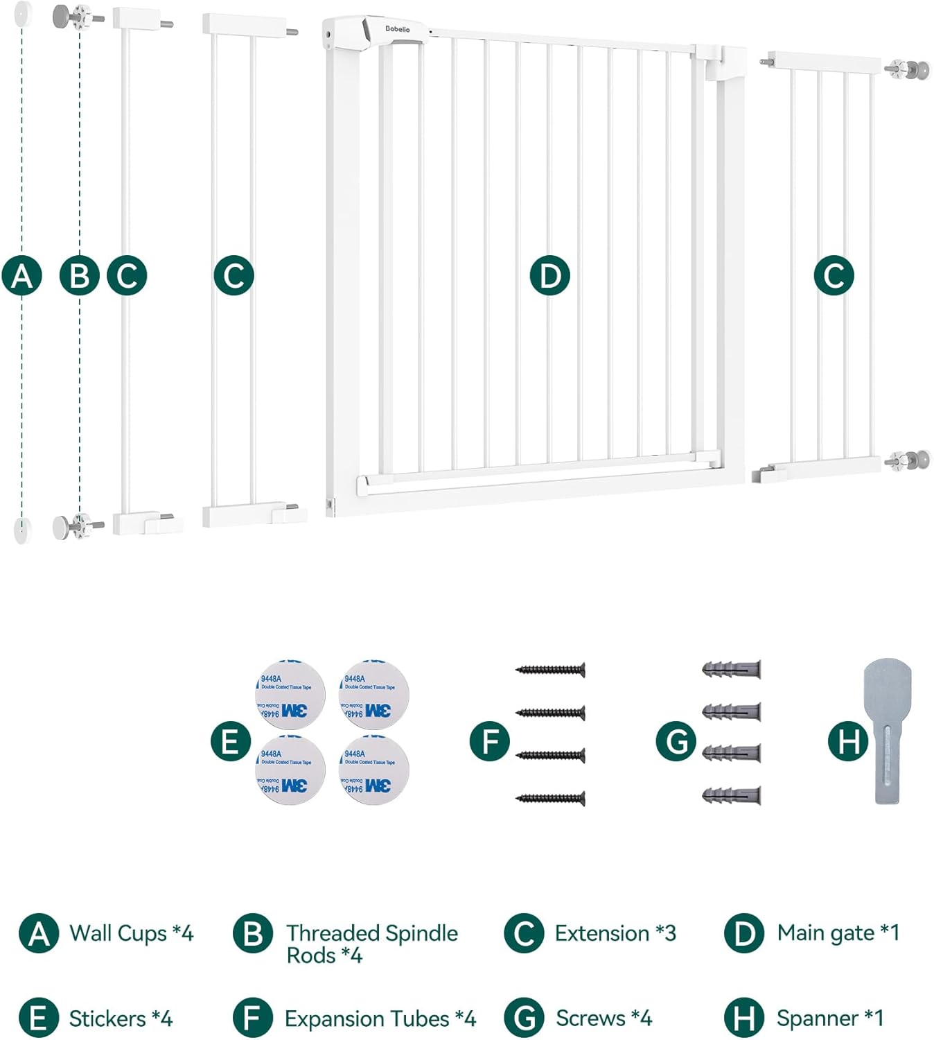 - EXTRA WIDEβ The pet gate consists of a gate and 3 extensions. The maximum width is 57 Inch, while the minimum is 36 Inch, ideal for wide openings as well as stairs, hallways and doorways to protect children and pets.The main gate is widened to 29.5 inches, making it very convenient to pass through.
