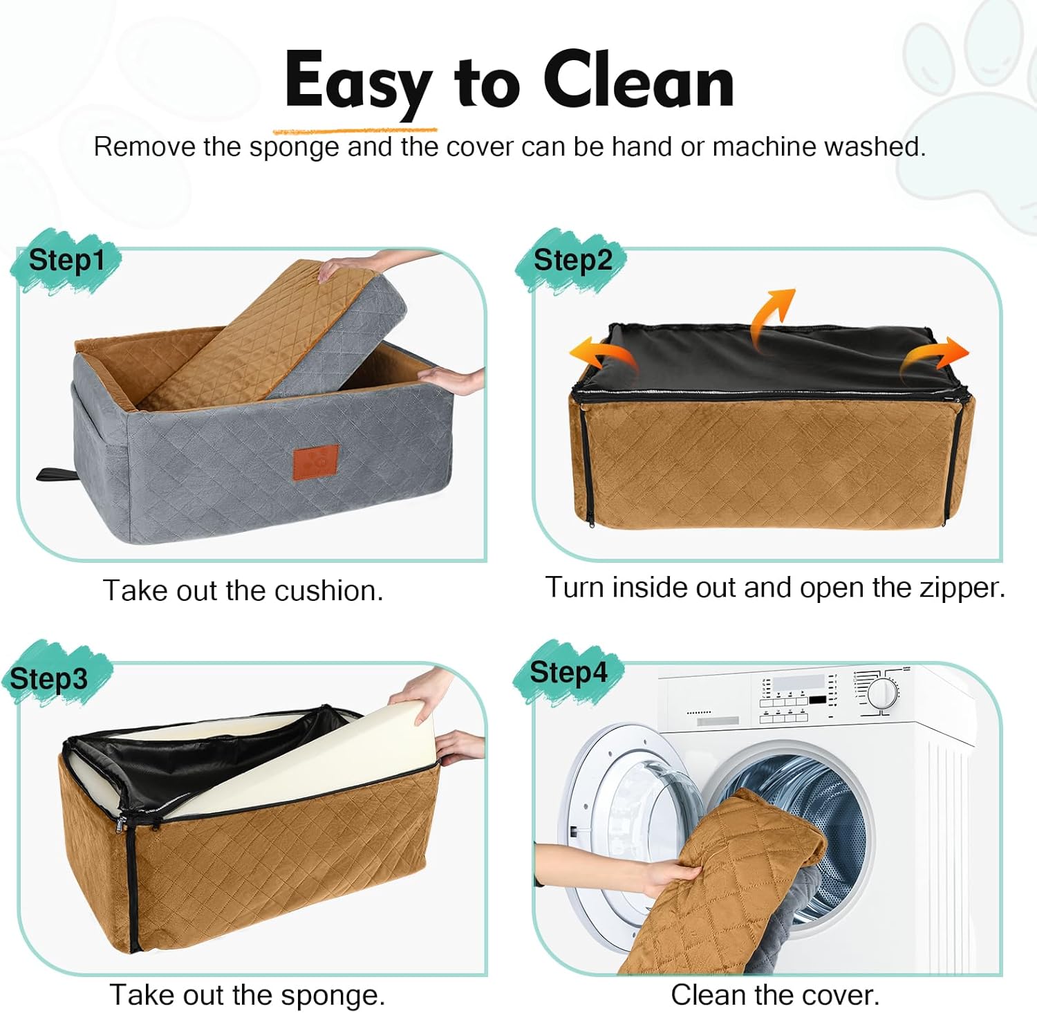 - 【Detachable and Washable】Just open the zipper of the seat and cushion to take out the sponge ,and put the dog seat fabric cover into the washing machine for cleaning. WARM TIPS: The dog bed for car is vacuum compressed packaged, after opening the package, please wait patiently for about 24-48 hours to recover to the best state