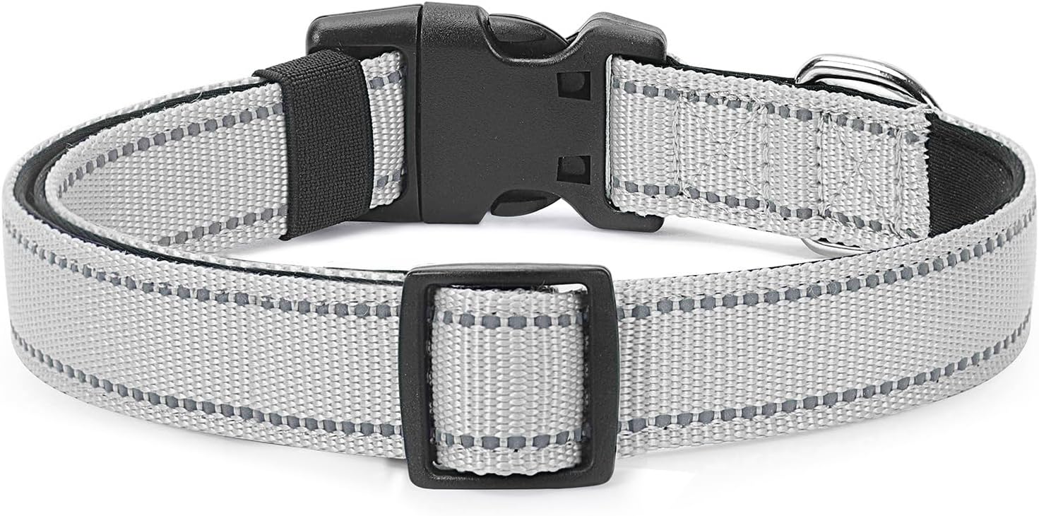 Reflective Dog Collar Padded with Soft Neoprene Breathable Quick Release Basic Dog Collars for Small Dogs Girl Boy Silver
