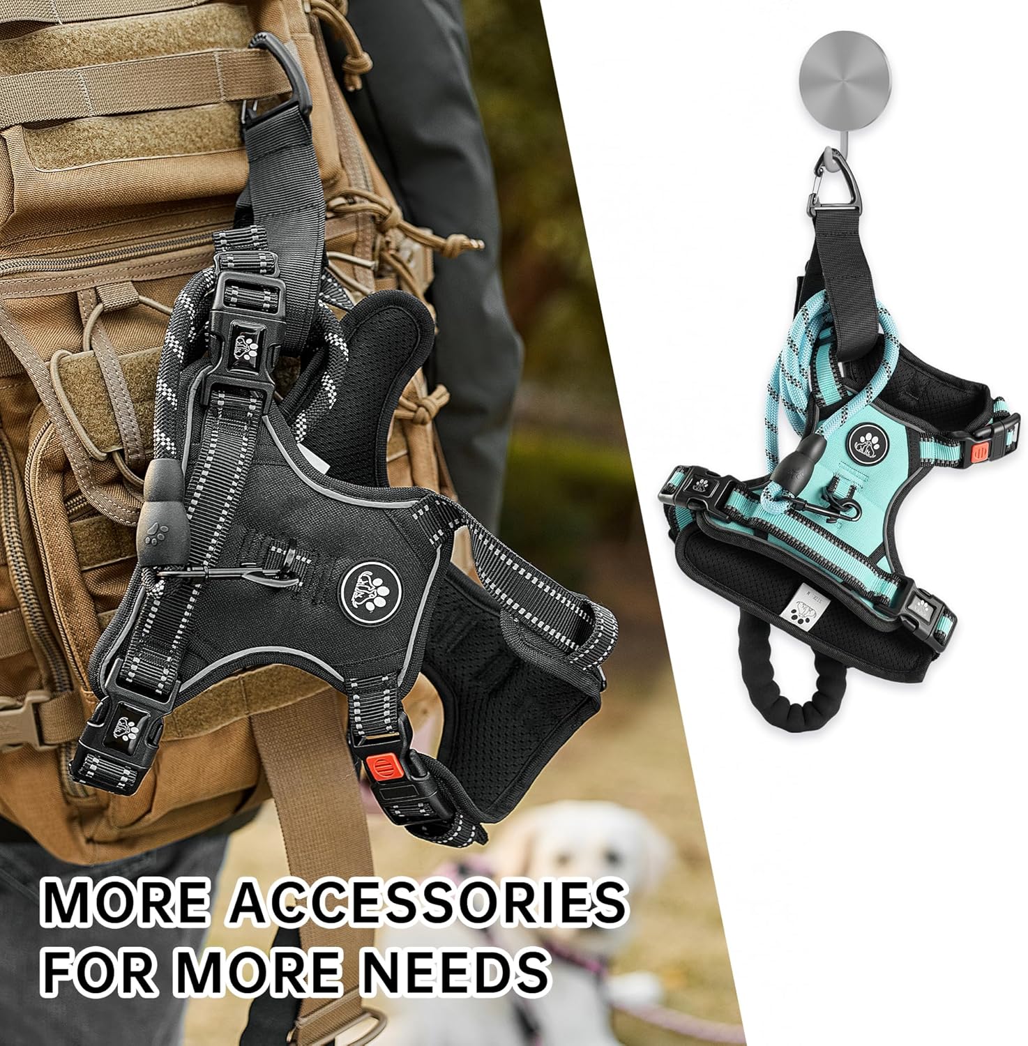 - 【SELECTED ACCESSORIES】 Our no pull harness includes 1 professional dog leash & 1 retractable seatbelt & 1 storage strap, which makes walking dogs a pleasure. We provide several size harnesses for small dogs to large dogs, more details please refer to the sizing chart