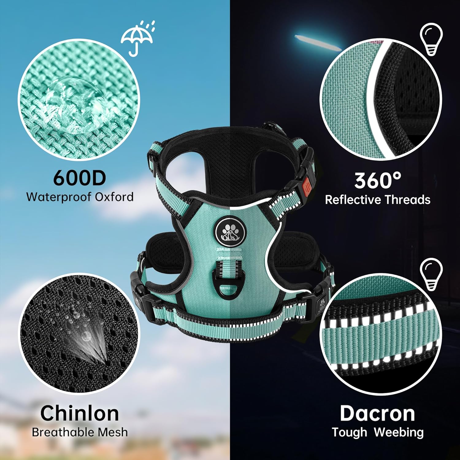 NESTROAD No Pull Dog Harness,Adjustable Oxford Dog Vest Harness with Leash,Reflective No-Choke Pet Harness with Easy Control Soft Handle for Large Dogs(X-Large,Turquoise)