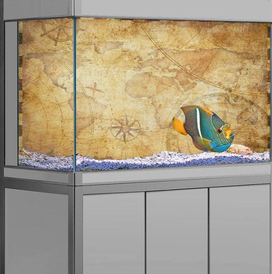 72X24IN Retro Old Travel World Map Terrarium Background, Art Parchment Pirate Treasure Map Reptile Habitat Background with 10EVA Double-Sided Tape