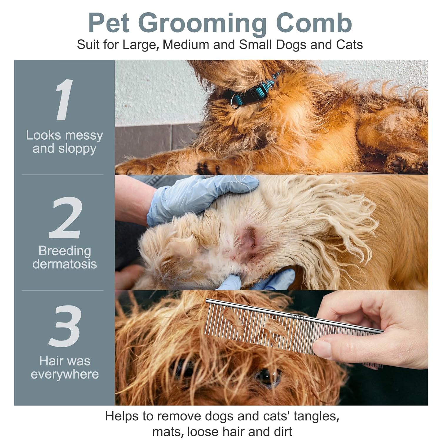 - 【Sturdy&Durable】-This dog cat grooming comb is manufactured from stainless steel material, which is rustproof and corrosion-resistant, sturdy, durable and not easy to break, providing you with long-lasting use.