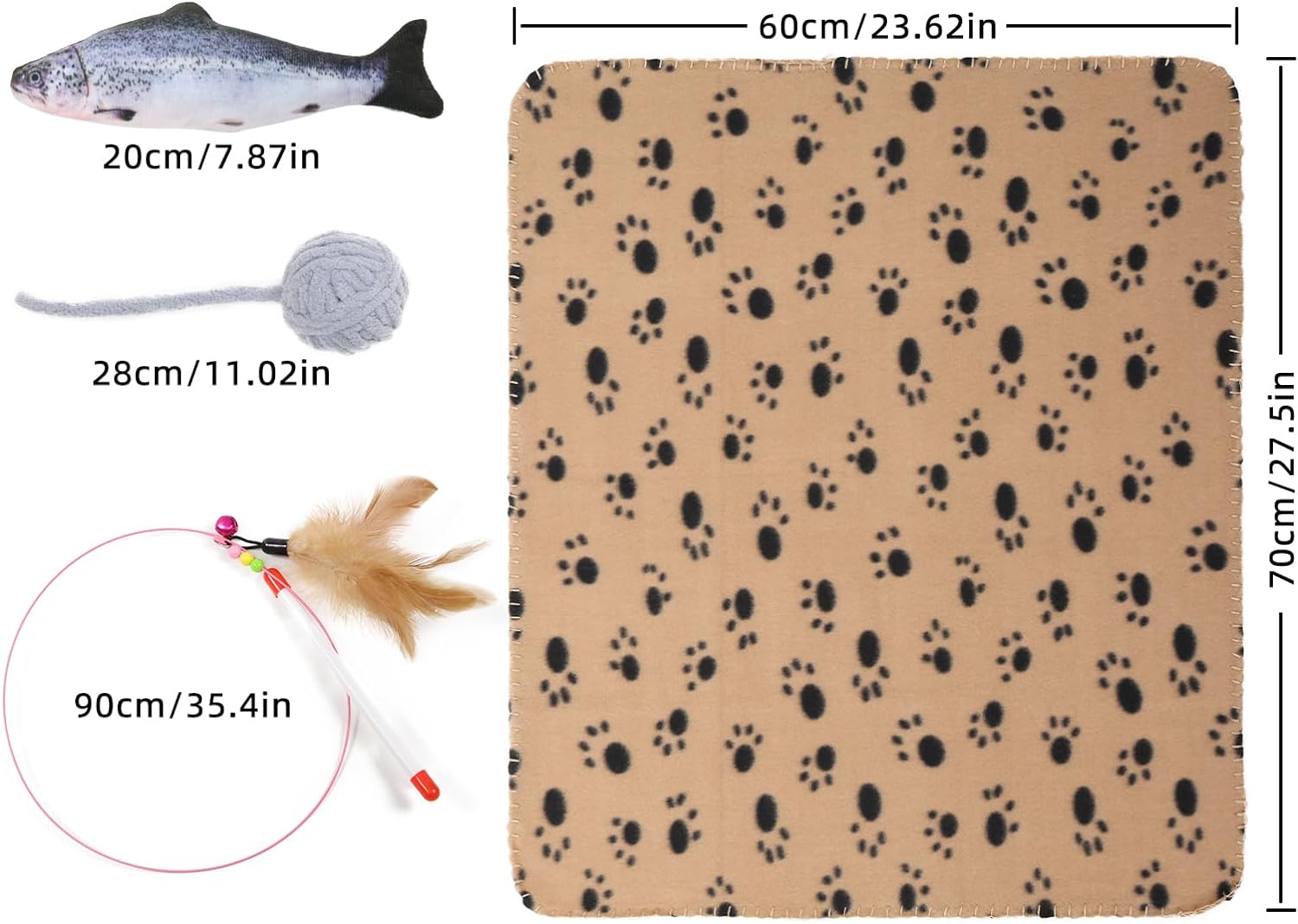 - INTERACTIVE CAT TUNNEL CAT TOY SET: Contains a uniquely designed long cat tunnel, sturdy track spring cat toys, cat teasing sticks, simulated plush fish, wool balls, resting blankets and other elements to create an interesting environment for cats environment