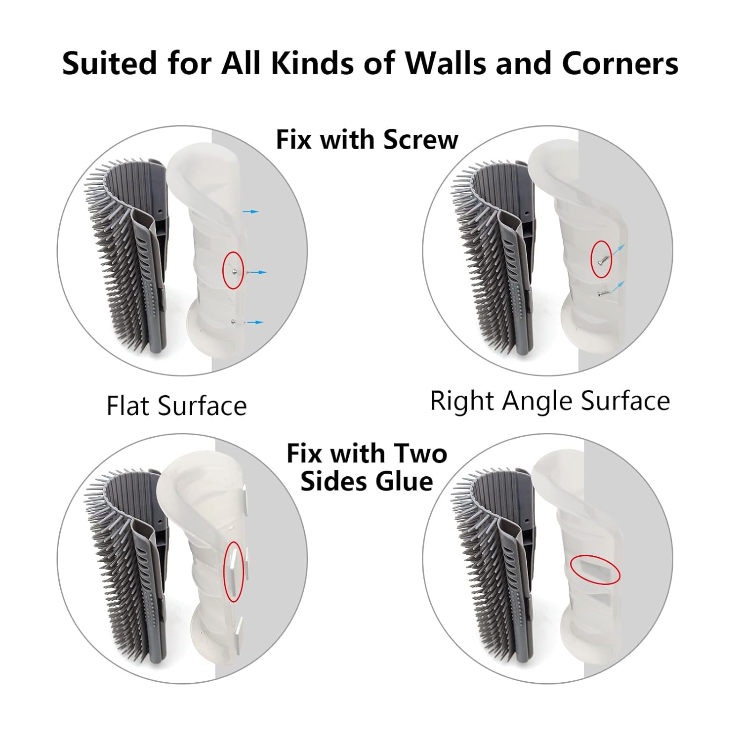 - π Hassle-Free Installation - Suitable for nearly any wall corners, table legs, or cabinet corners, our groomer can be mounted effortlessly onto flat or corner surfaces using the included double-sided stickers or screws. Follow the clear installation steps provided on our package for quick setup.