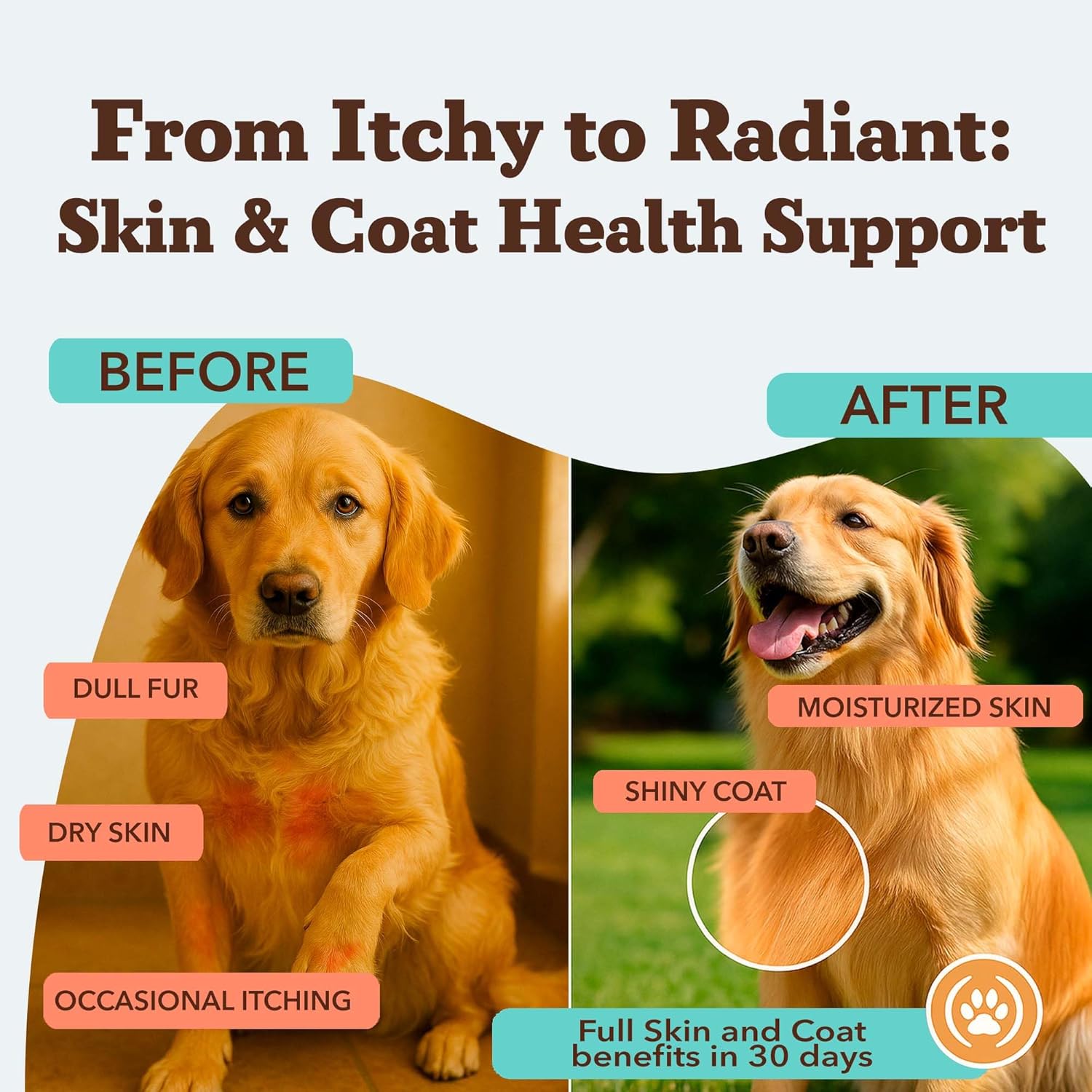 - SUPPORTS HEALTHY SKIN & COAT SHINE: Formulated with Omega-3 fish oil from Wild Alaskan Salmon, Biotin, and Vitamin E to nourish the skin from within, promote natural moisture balance, and reveal a soft, glossy coat for dogs of all breeds and ages.