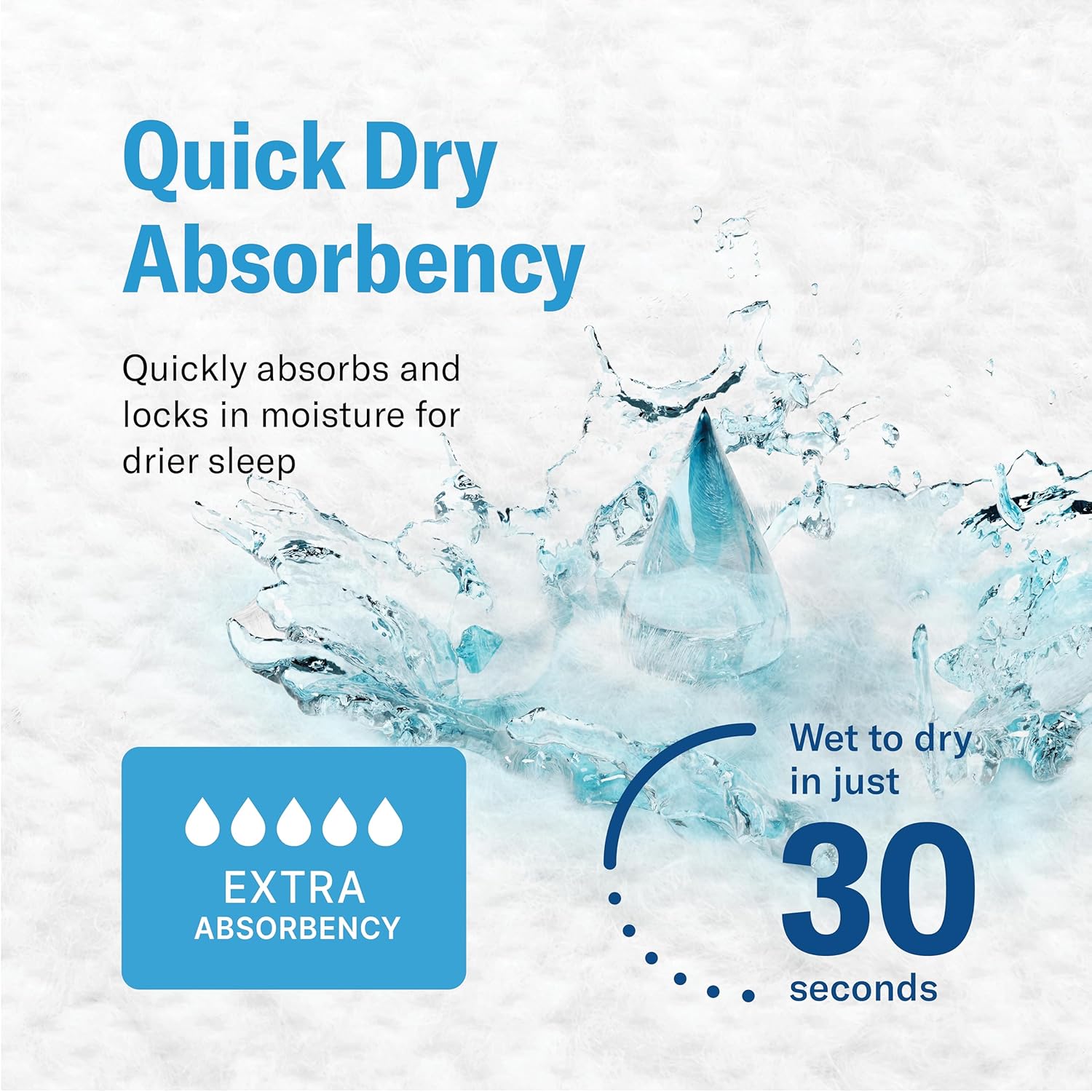 - LEAKLOCK TECHNOLOGY β Enjoy 5 layers of comfortable protection: (1) Non-woven top sheet for a soft feeling on skin. (2) Absorbent, soft tissue for ultimate comfort. (3) Polymer beads for maximum absorbency. (4) Soft fluff core provides added comfort, creating a quiet and quality sleep. (5) Waterproof barrier layer for a leak-free and odor-free night.