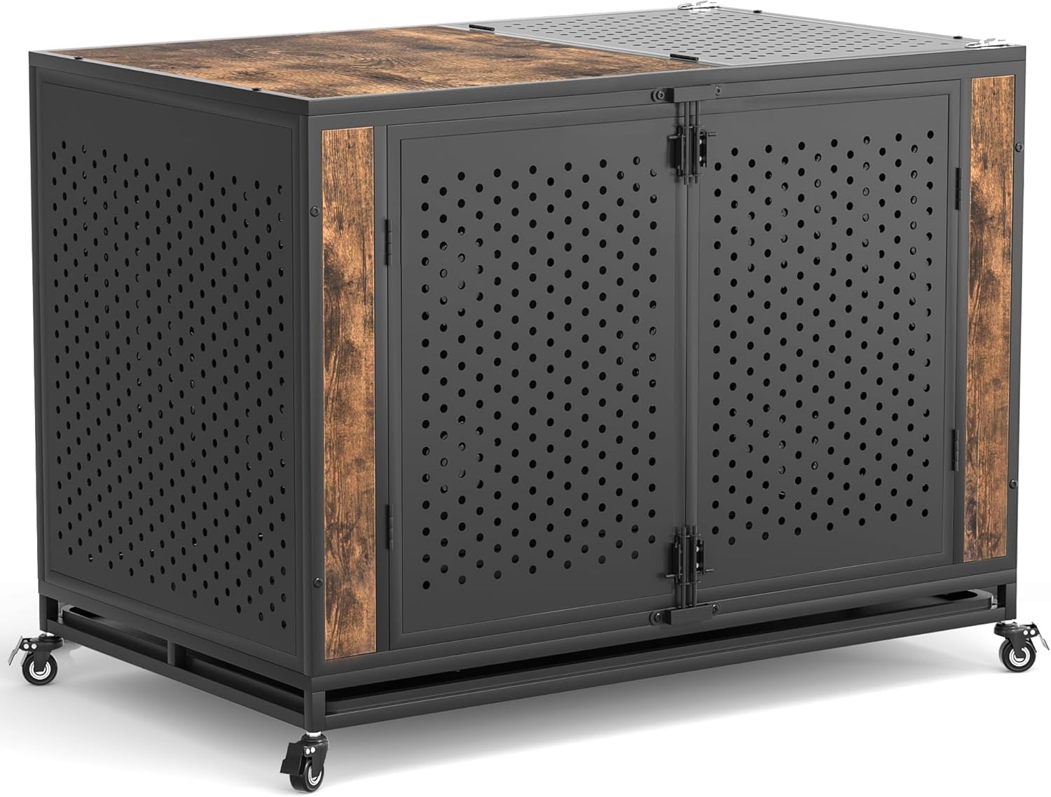 48" Heavy Duty Dog Crate Furniture for Extra Large Dogs, Enclosed Design with 0.5 inch Holes, Indestructible Metal Kennel for High Anxiety Dogs, Chew Proof Pet Cage House Indoor, Brown