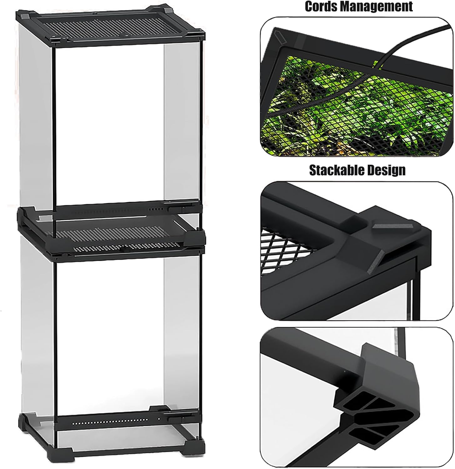 - 【Full Glass Reptile Tank】- What you get is a 8x8x12 inch tank, a perfect habitat for your small arboreal reptile or amphibian, this tank is made of thickened glass, high-quality plastic and metal mesh, and the integrated design requires no installation, which is durable and beautiful.