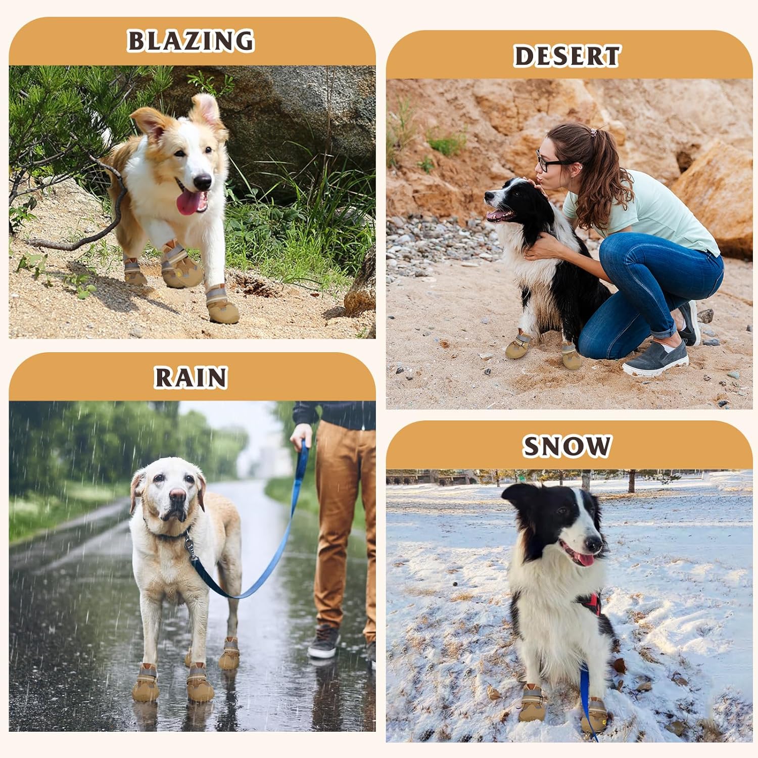 Dog Shoes, FISHOAKY Dog Shoes for Large Dogs, Mesh Breathable Dog Boots & Paw Protectors for Summer Hot Pavement Winter Snowy, 360°Anti Slip 4Pcs Dog Booties with Reflective Khaki (Size 4)