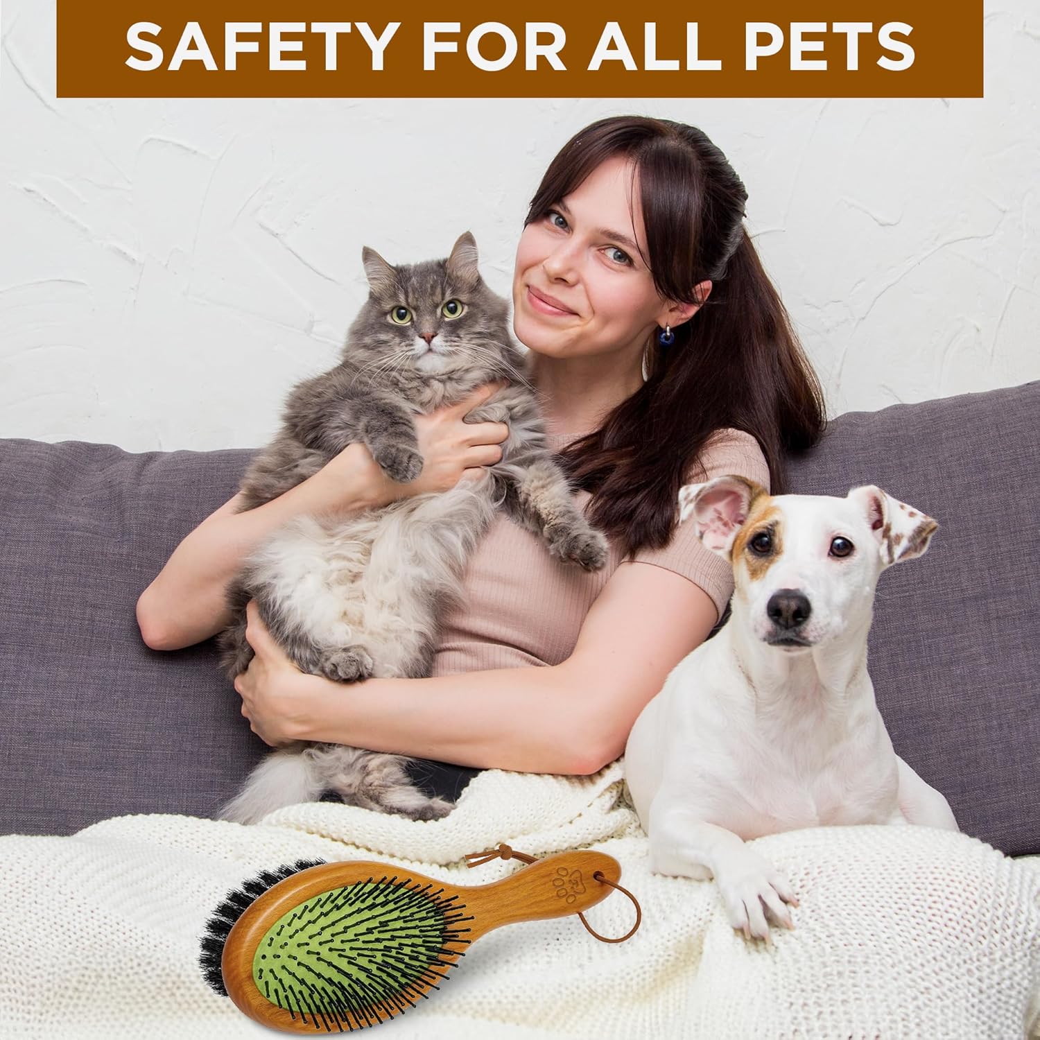 TAKAVU Pin & Bristle Pet Brush for Dogs & Cats - Double Sided Grooming Tool Detangles, Removes Loose Hair & Conditions Coat - Wood Handle