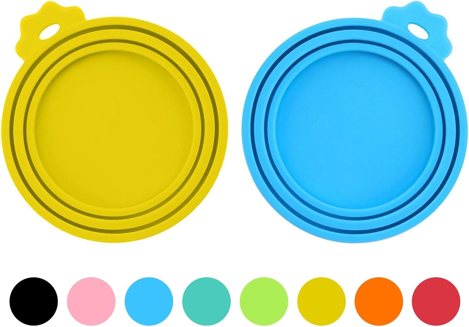 2 Pack Pet Food Cans Lids, Silicone Food Can Covers for Dog and Cat, BPA Free/Food Safe/Universal, One Fit Most Standard Size Food Can Top Yellow/Blue