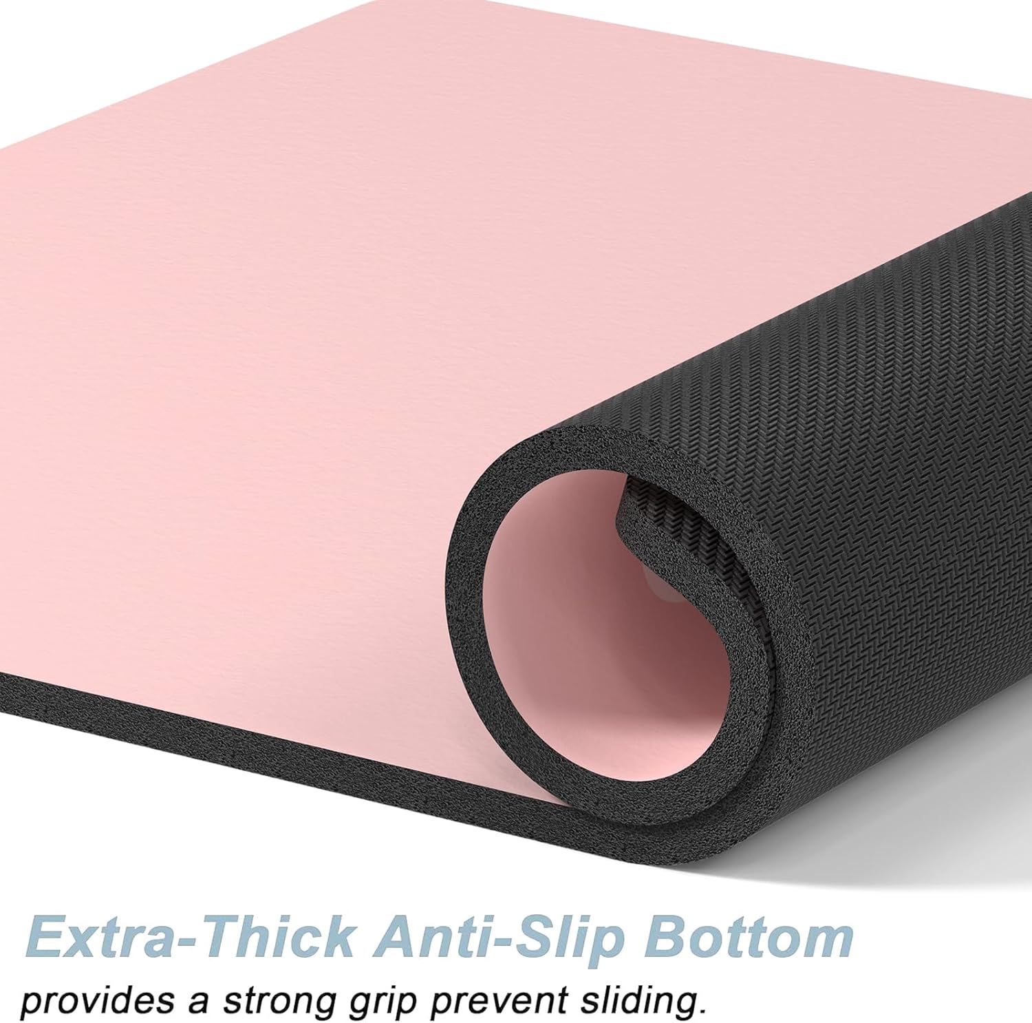 Rnivvi Dog Food Mat, 16" x 24" Footprint Absorbent Dog Cat Bowl Mat for Food and Water, Cute Anti-Slip Rubber Pet Feeding Rug Protect Floors, Puppy Placemat for Feeding & Watering Supplies, Pink