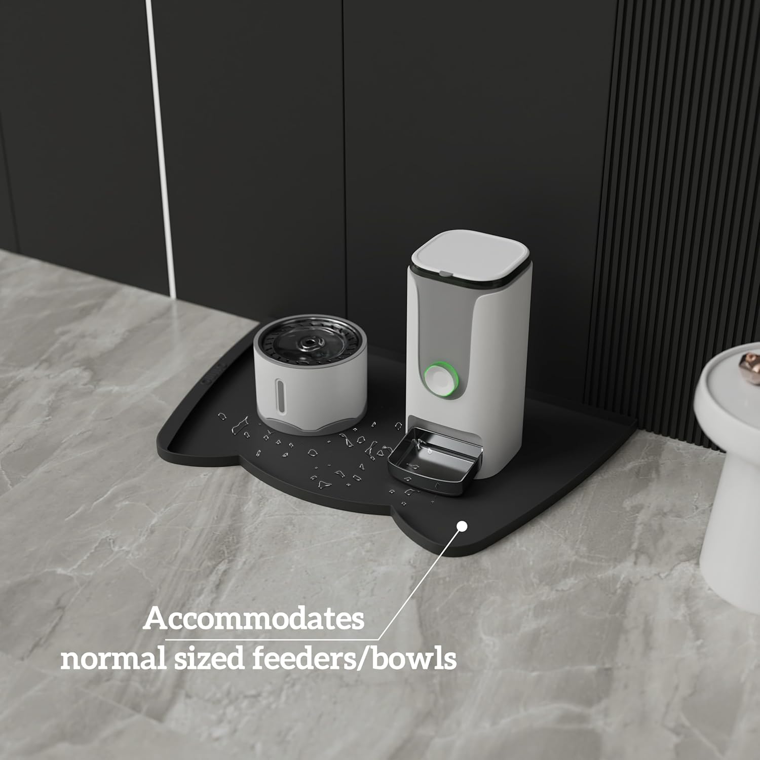 OHMO Dog Food Mat(Black, 24 * 15'') w/Residue Collection Pocket Silicone Pet Feeding Mat for Floor High Edges Anti Spills Waterproof Cat Water Bowl Tray, Easy Clean Placemat