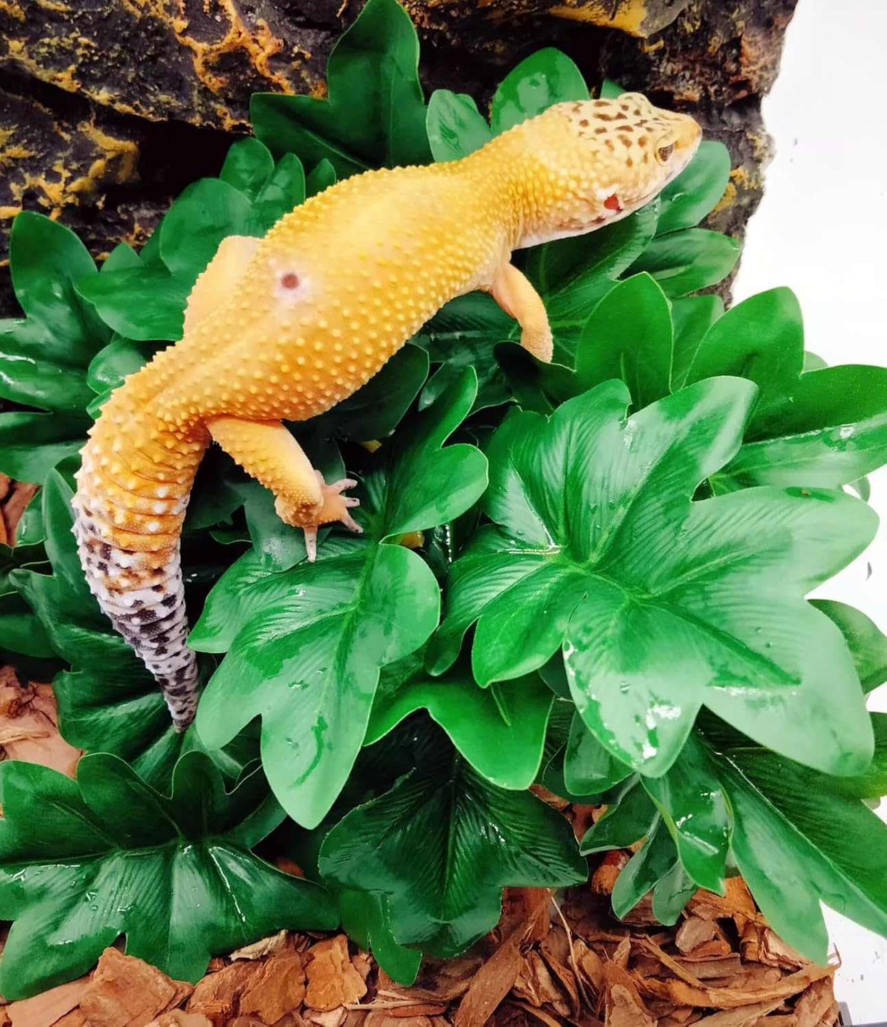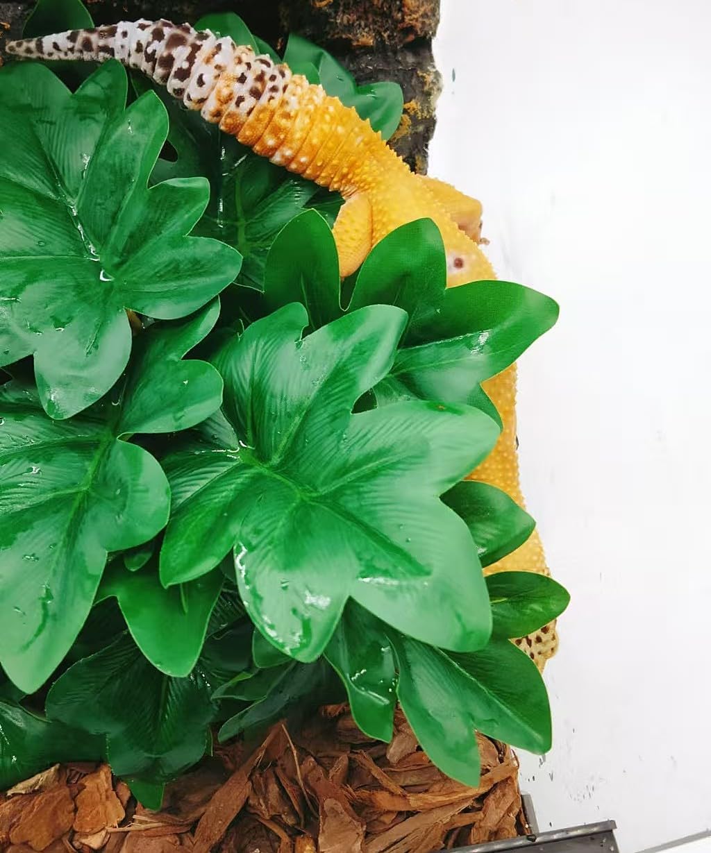 - EASY TO CLEAN AND WATERPROOF: Very easy to clean and maintain, just wipe it with a damp cloth, no need for hassle like live plants. The leaves can hold water droplets well, suitable for chameleons and some geckos and other animals that only drink dew and water droplets.