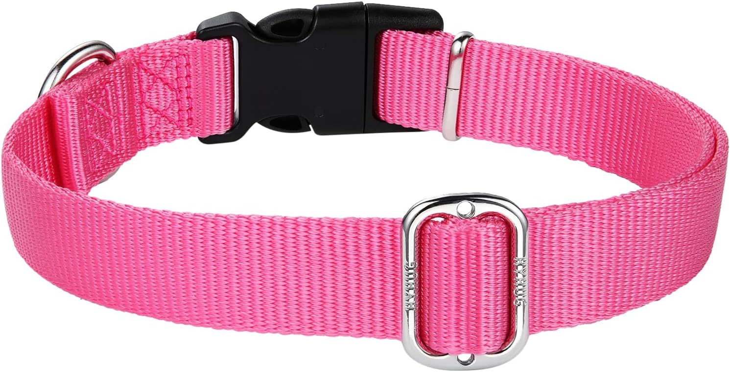 - Durable Construction: This dog collar is made of sturdy and high quality nylon material. It also offers a wide variety of color options, and is suitable for dogs of all breeds and sizes, ensuring long-lasting durability.