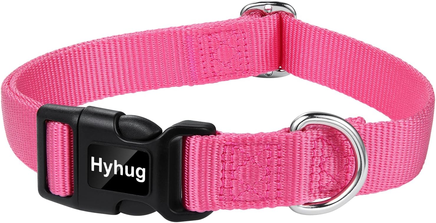 Hyhug Dog Collar with Quick Release Buckle, Nylon Adjustable Sturdy Cute Dog Collars for Large Dogs (Candy Pink, Large)