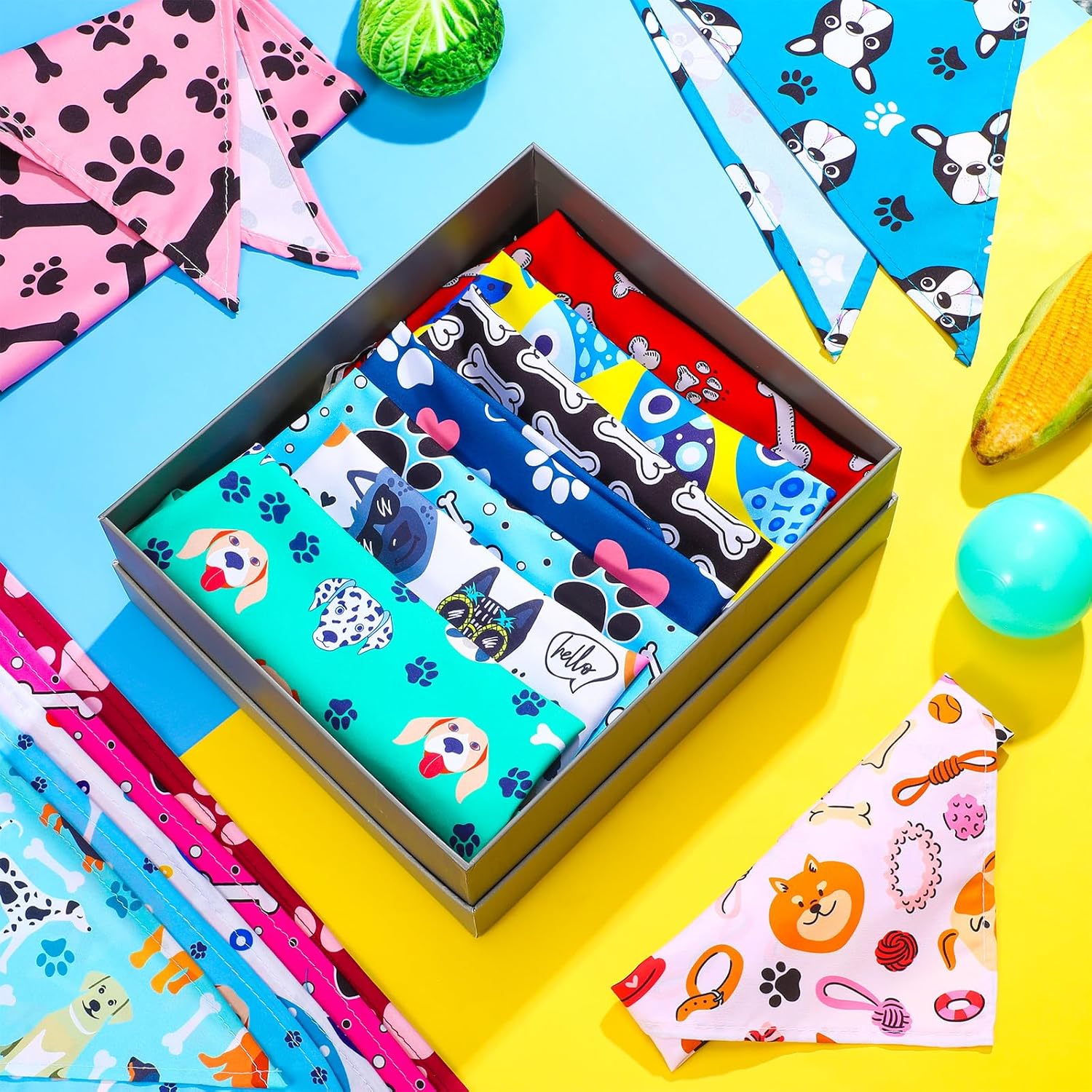 - Ample Quantity: you will receive 72 packs paw bone dog bandanas in 36 styles, 2 of each style, which can make your dog look fashionable, printed with different patterns, bright colors, sufficient quantity, and diverse styles, meeting the different wearing needs of your pet and daily replacement use