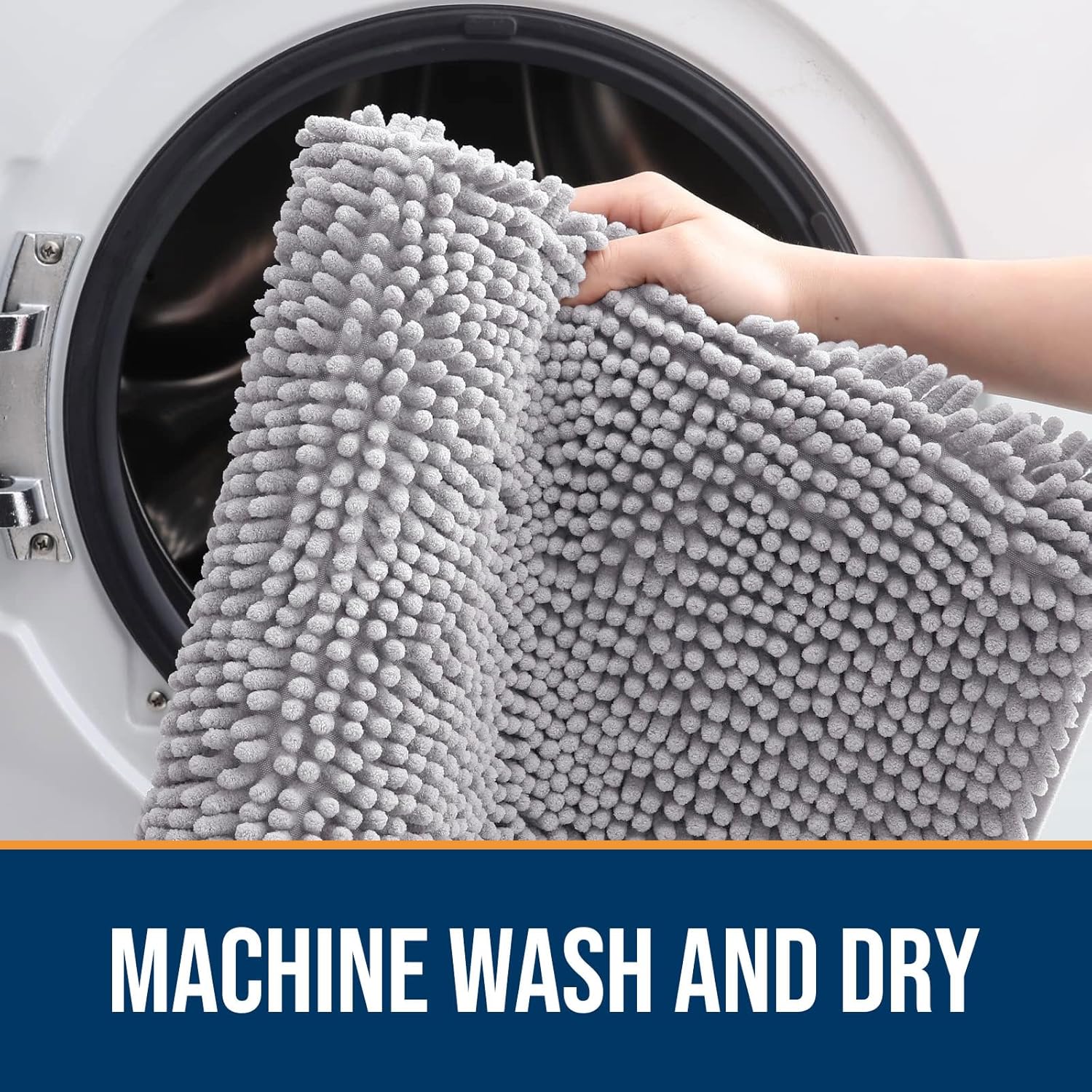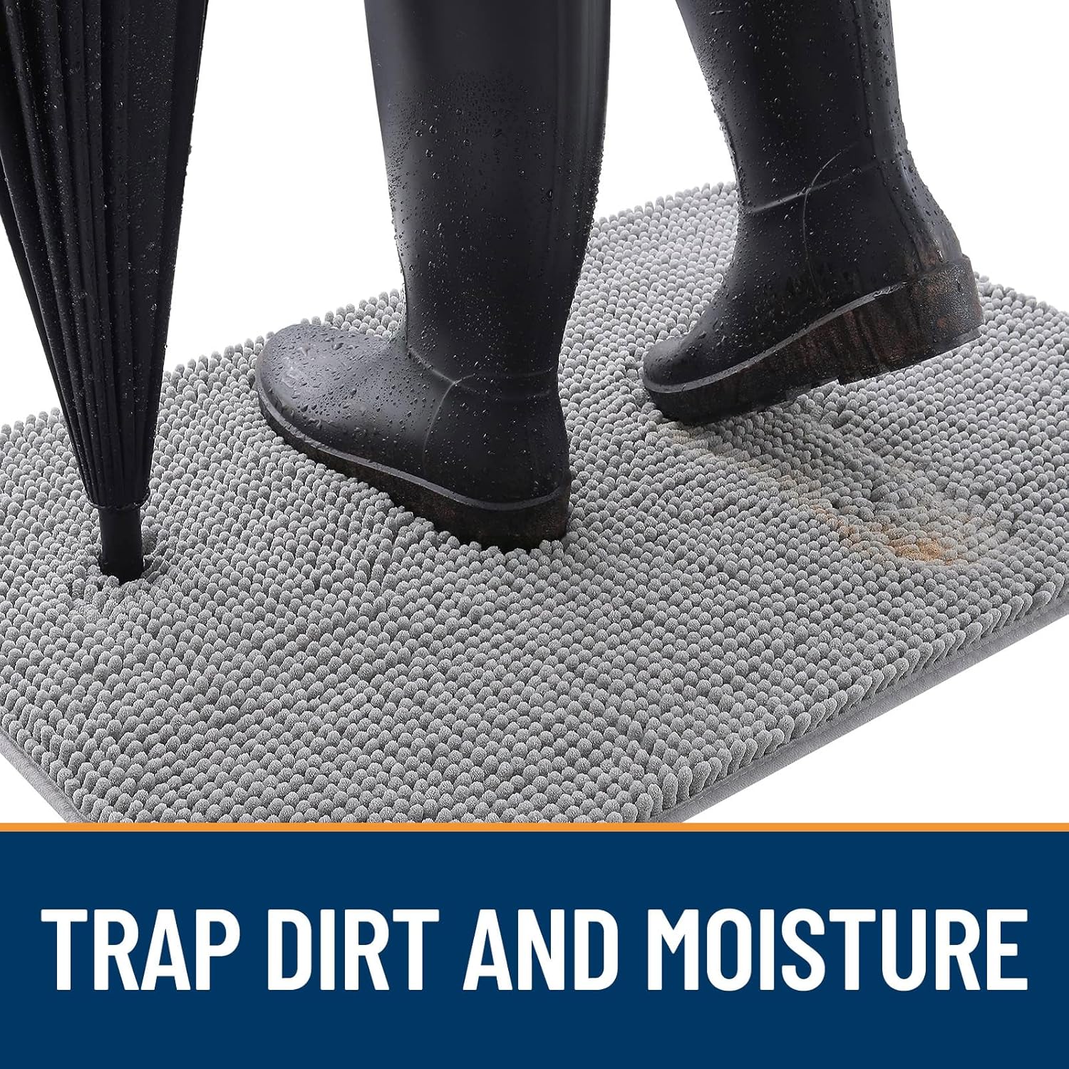 OLANLY Dog Door Mat for Muddy Paws 30x20, Absorbs Moisture and Dirt, Absorbent Non-Slip Washable Doormat, Quick Dry Chenille Mud Mat for Dogs, Entry Indoor Entryway Carpet for Inside Floor, Light Grey