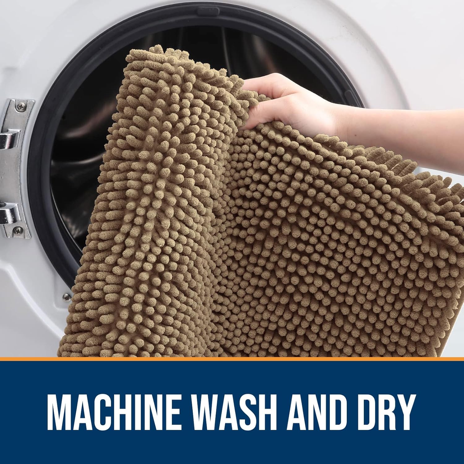 OLANLY Dog Door Mat for Muddy Paws 47x24, Absorbs Moisture and Dirt, Absorbent Non-Slip Washable Doormat, Quick Dry Chenille Mud Mat for Dogs, Entry Indoor Entryway Carpet for Inside Floor, Tan