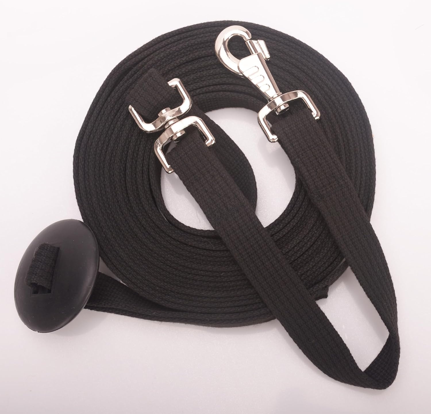 Cord Cotton Lunge Line with Rubber Stop,Equine Lunge Line for Horses with Swivel Bolt Snap,24 ft (Black, 24ft)