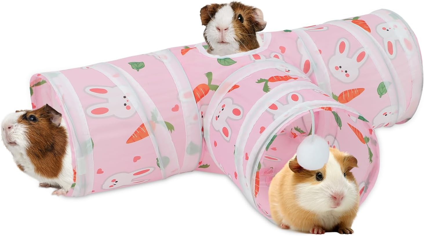 - BEST LITTLE TUNNEL/TOY TO PLAY: Our small animal tunnel with 3 spacious tunnels, peephole & beall toy, this popular guinea pig toy gives your rat more ways to have fun. Provides hours of exercise & self-amusement. small animal tunnel to provide your pet with more so much fun.Great for guinea pigs, chinchillas, ferrets, hedgehogs, mice, hamsters and other small animals.