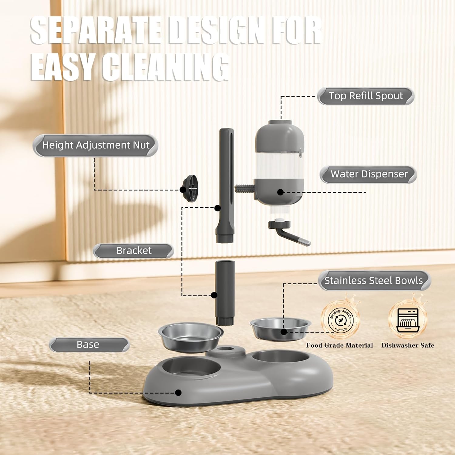 - 【Eco-friendly Material】MITOCAPY dog bowls are made of eco-friendly food-grade quality PC material, which is very safe for your pets. All parts can be easily disassembled and both two stainless steel dog bowls and ceramic dog bowls can be washed in the dishwasher.