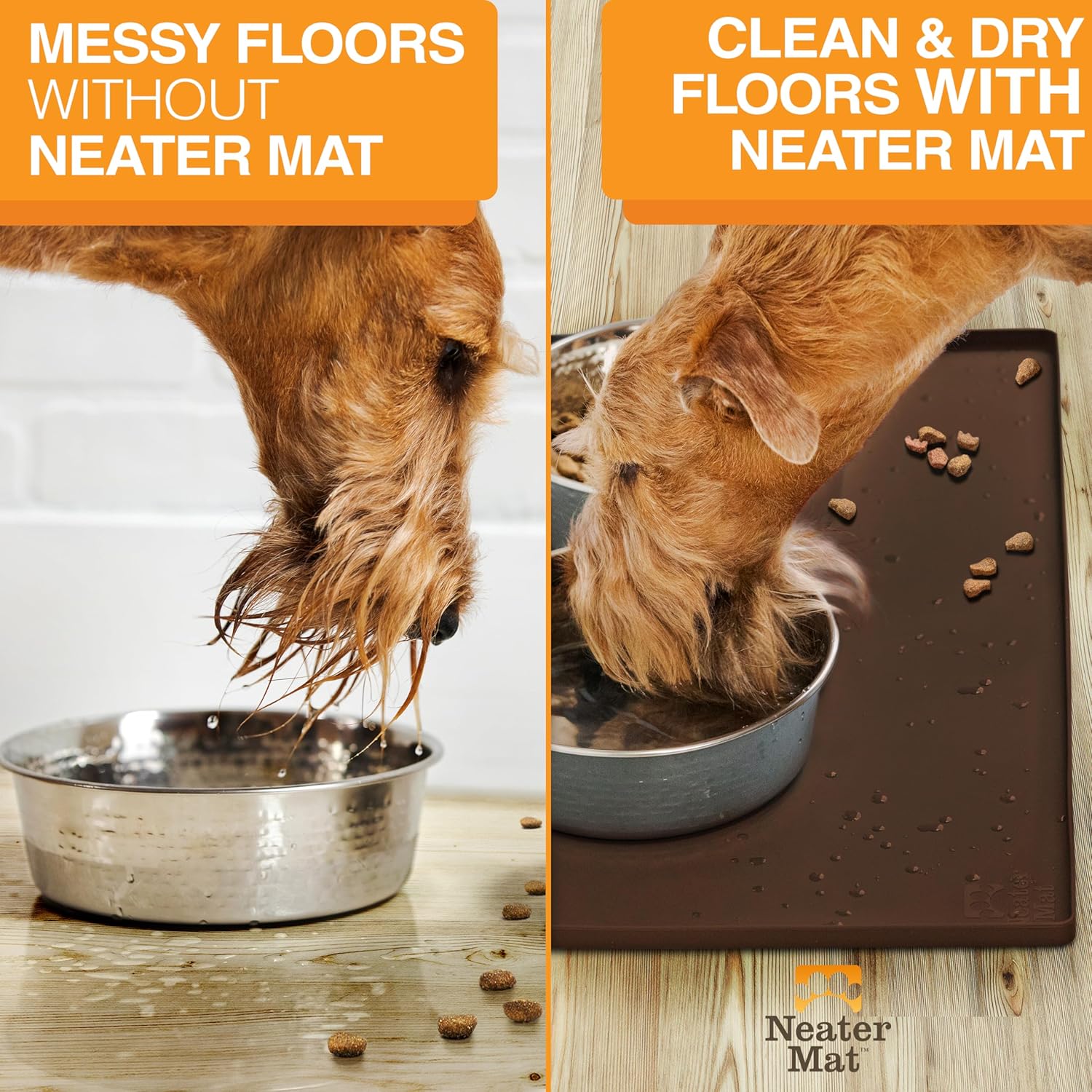 - PET MATS PROTECT FLOORS FROM SPILLS: Neater Mat pet mat goes under your cat or dog’s food and water bowls to catch any spills or splashes from getting onto your floor.
