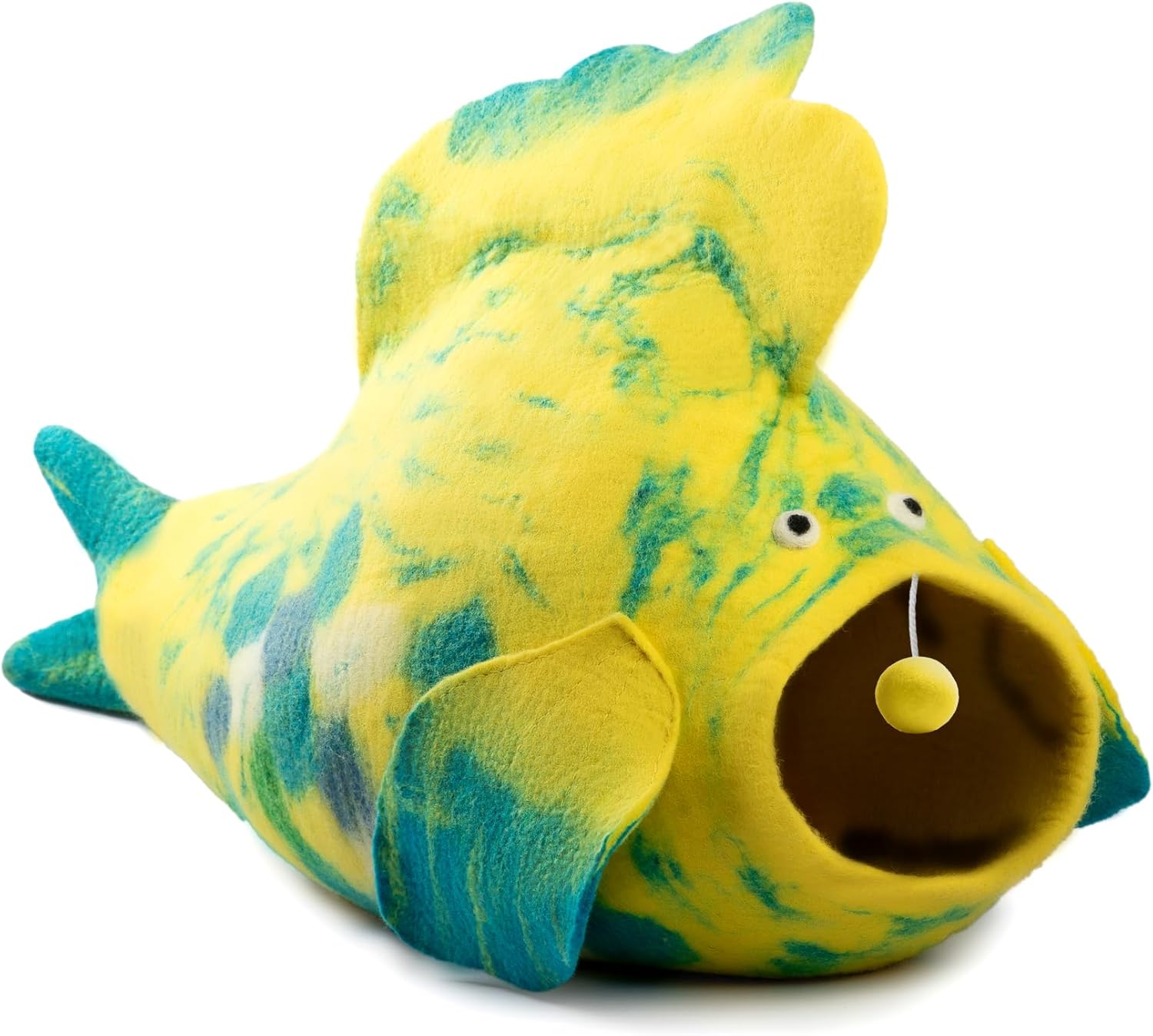Luxurious Eco-Friendly Merino Wool Cat Cave Bed Fish Design - Foldable Hideaway Pod for Indoor Cats - Premium Felt Kitten Beds - Covered Cat House for Ultimate Cozy Comfort by Woolygon