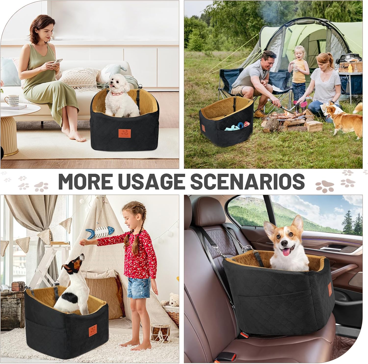 - 【Removable and Washable:】This dog car booster seat is completely removable and washable, just open the bottom zipper to take out the sponge and put the dog car bed fabric cover into the washing machine for cleaning
