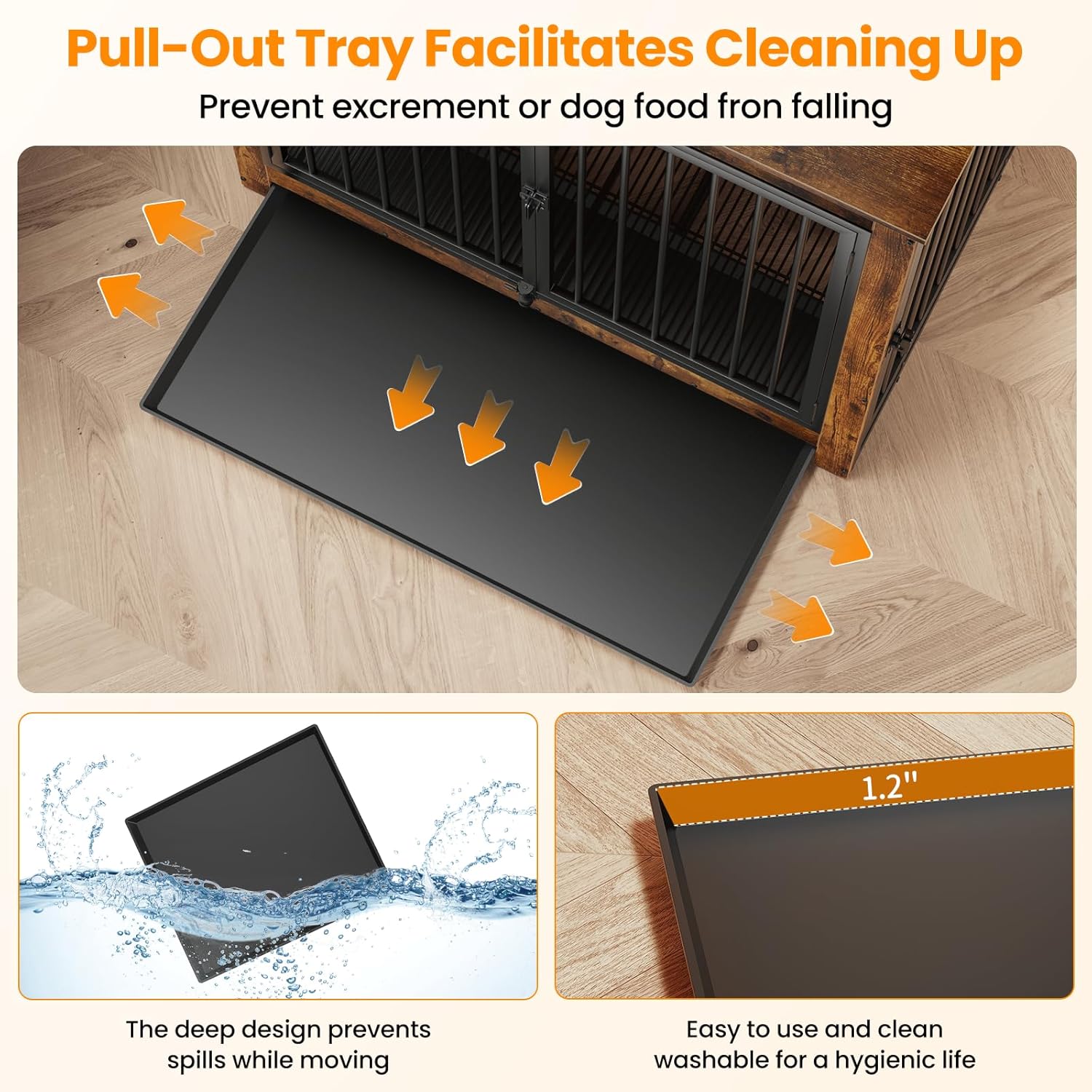 - ăVersatile Tray UsageăPut the tray under the bottom mesh to catch crumbs, fur, and dirt, keeping your dog's place clean without dirtying your floor, maintaining a tidy living space for your pet, or place the tray above the mesh to offer your dog a flat, comfortable surfaceâit's up to you
