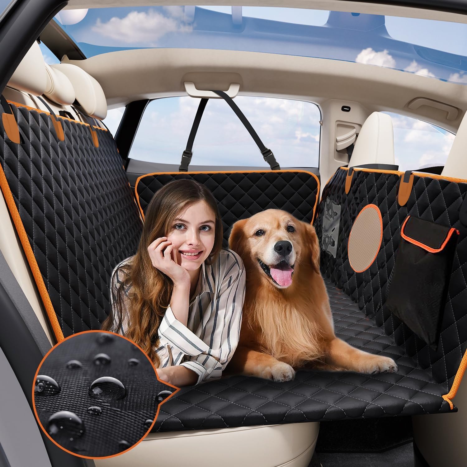 - đŸăAll-Round Protectionă: Dog back seat cover upgraded accessories, including 6 layers of thick wear-resistant fabric, PP cotton filling, three high-density fiberboards, 100% waterproof and tear-resistant, can fully cover the doors and back seats, and fully protect your car from scratches, dirt, and scratches. And it is easy to clean, just wipe it with a damp cloth or use a vacuum cleaner to remove it.