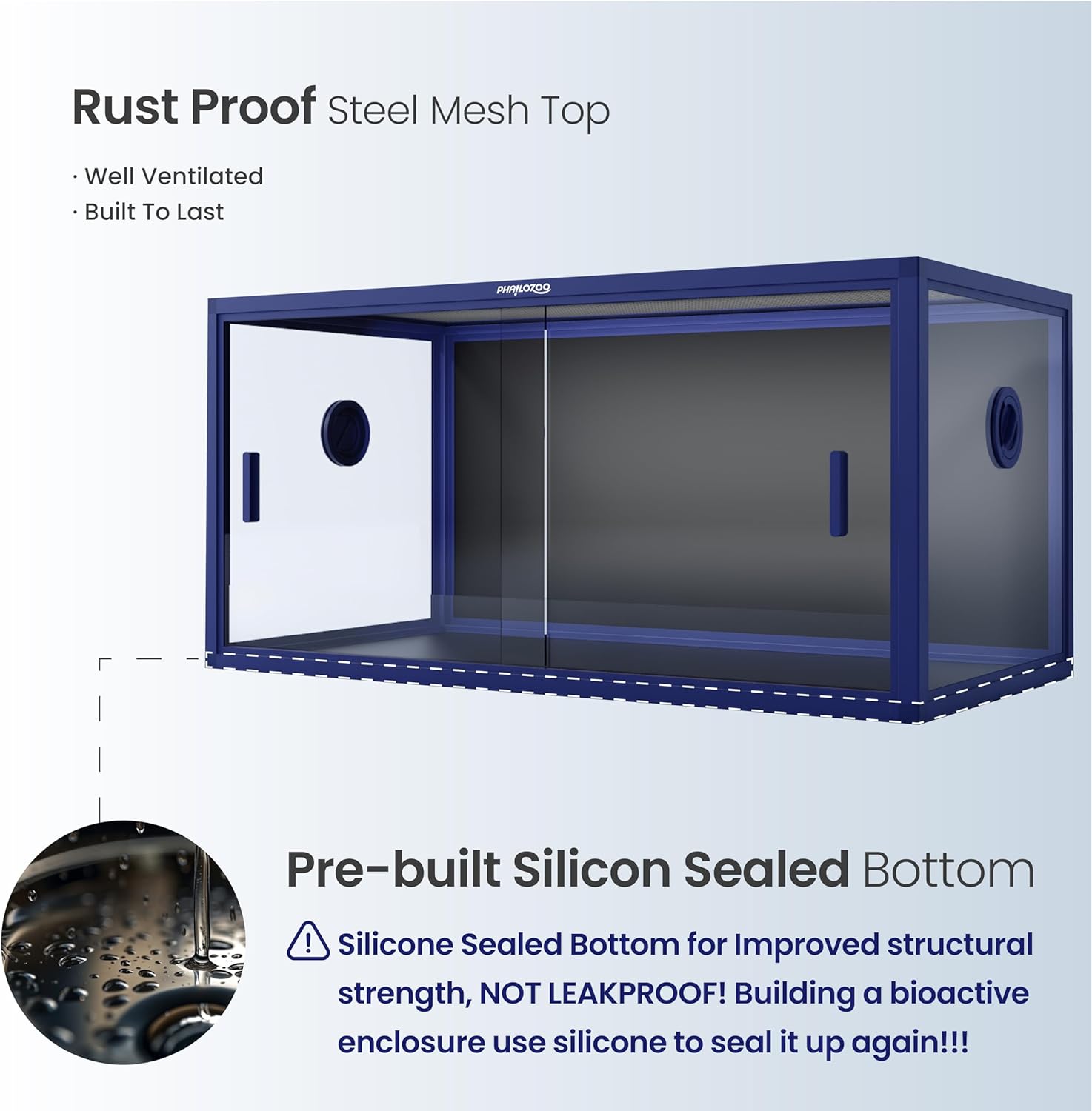 - ăCaution!!!ăNOT LEAKPROOF! Silicone-sealed bottom only for improved structural strength. If youâre building a bioactive enclosure, donât forget to double seal with silicone for a secure and reliable seal!