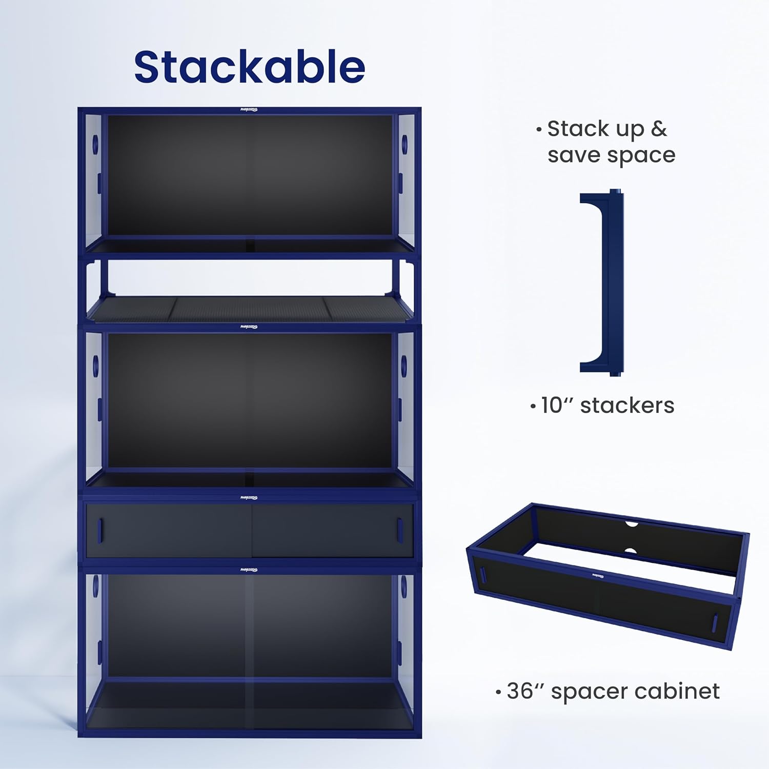 - ăStackableăOur stackers and spacer cabinets allow you to build your reptile sanctuary at home!