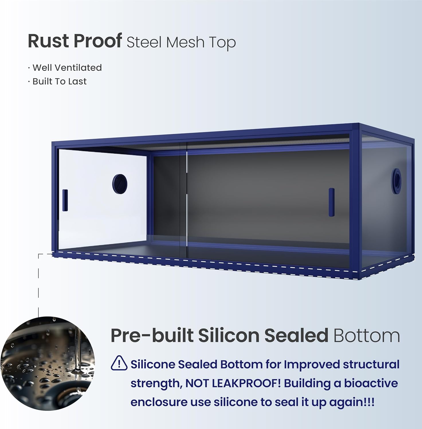 - ăCaution!!!ăNOT LEAKPROOF! Silicone-sealed bottom only for improved structural strength. If youâre building a bioactive enclosure, donât forget to double seal with silicone for a secure and reliable seal!
