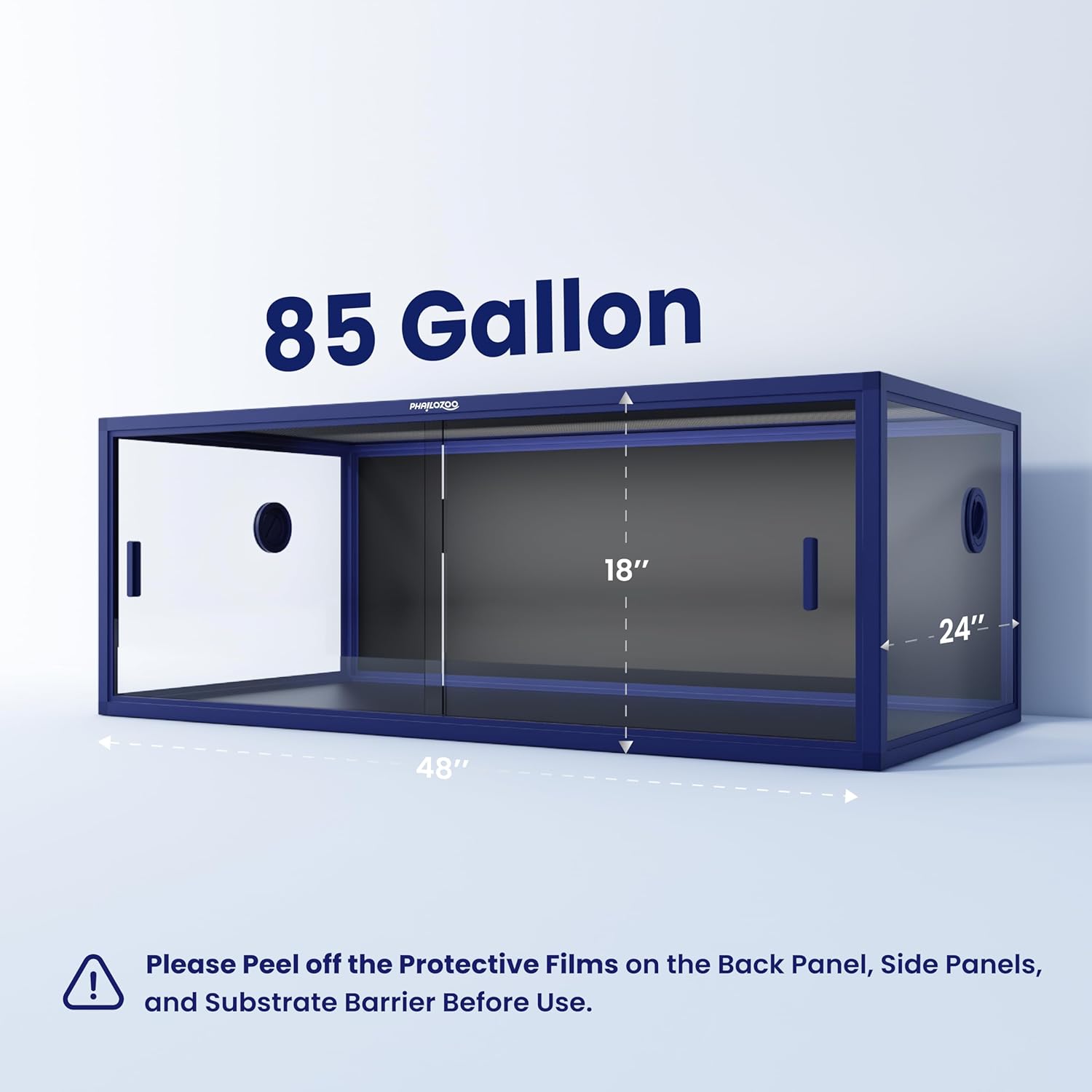 - ăSize MattersăOur stylish and functional 85 gallon reptile tank measures 48''Lx24''Wx18''H. Perfect for bioactive setups, such as snake enclosure, bearded dragon tank, and lizard tank. Spacious playground for your beloved reptiles to explore and thrive while being safe.