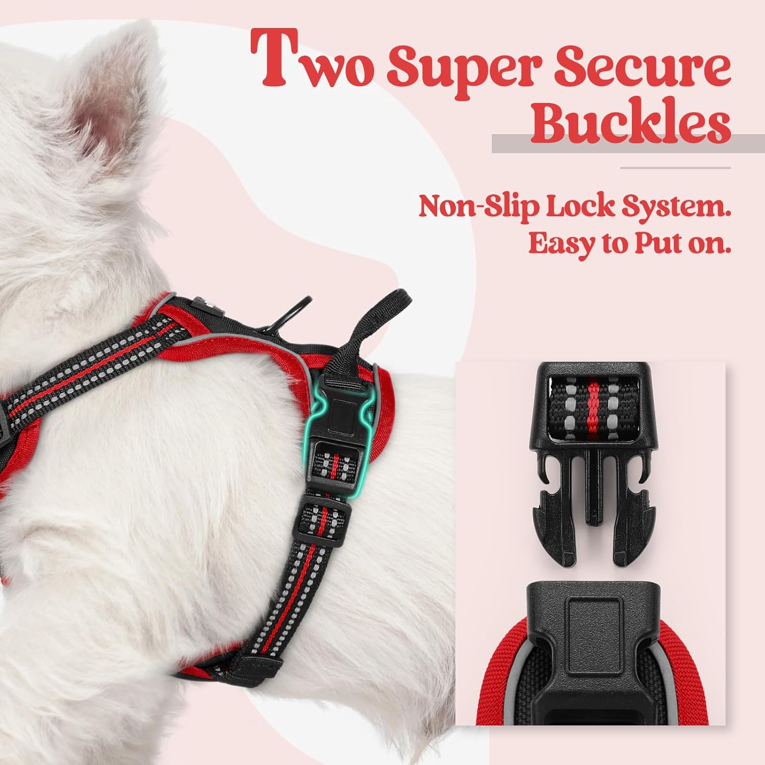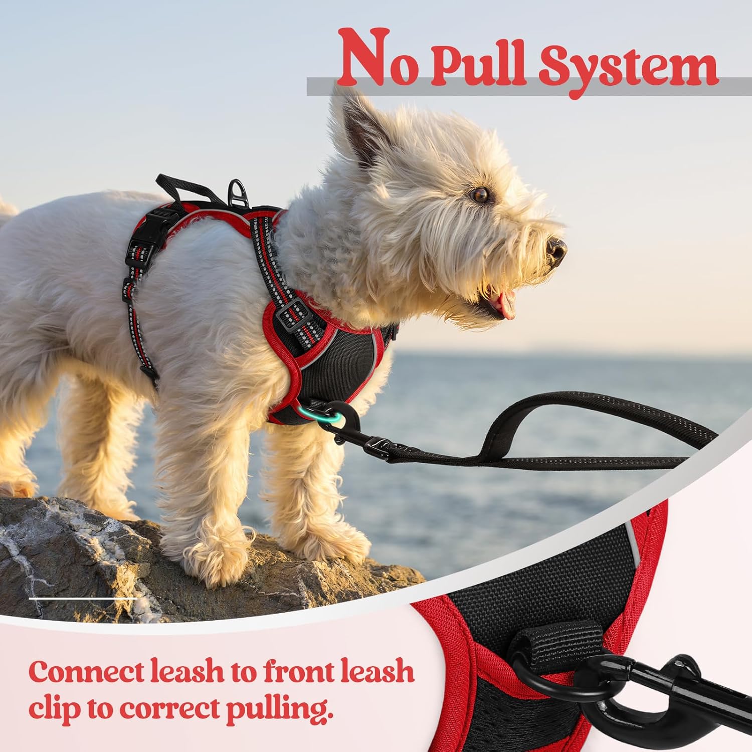 rabbitgoo Dog Harness No Pull with 2 Leash Clips, Adjustable Soft Padded, Reflective Oxford No Choke Pet Vest with Easy Control Handle for Puppy, Black & Red, XS