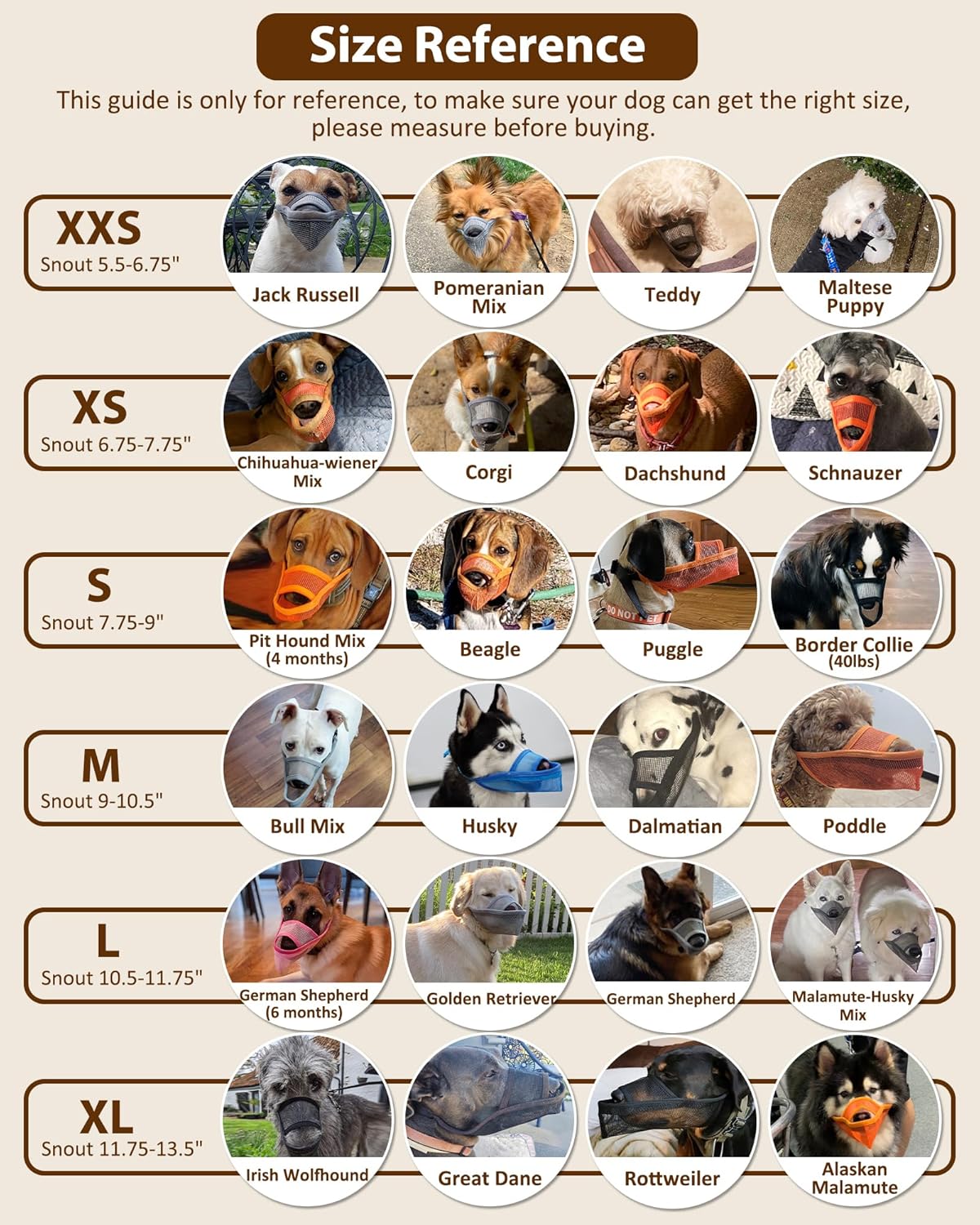 - Dog Muzzle for Small Dogs: The selected size is XXS, with a snout circumference of 5.5'' to 6.75''. Suitable for Schnauzer, Dachshunds, Standard Poodle, etc. Every dog’s snout is unique, please Measure Before Purchasing. Don't select a size based on breed or previous orders. If your dog's measurements are between two sizes, please choose the smaller size. (Note: Not for fierce dogs, overactive dogs, or short-snout dogs.)