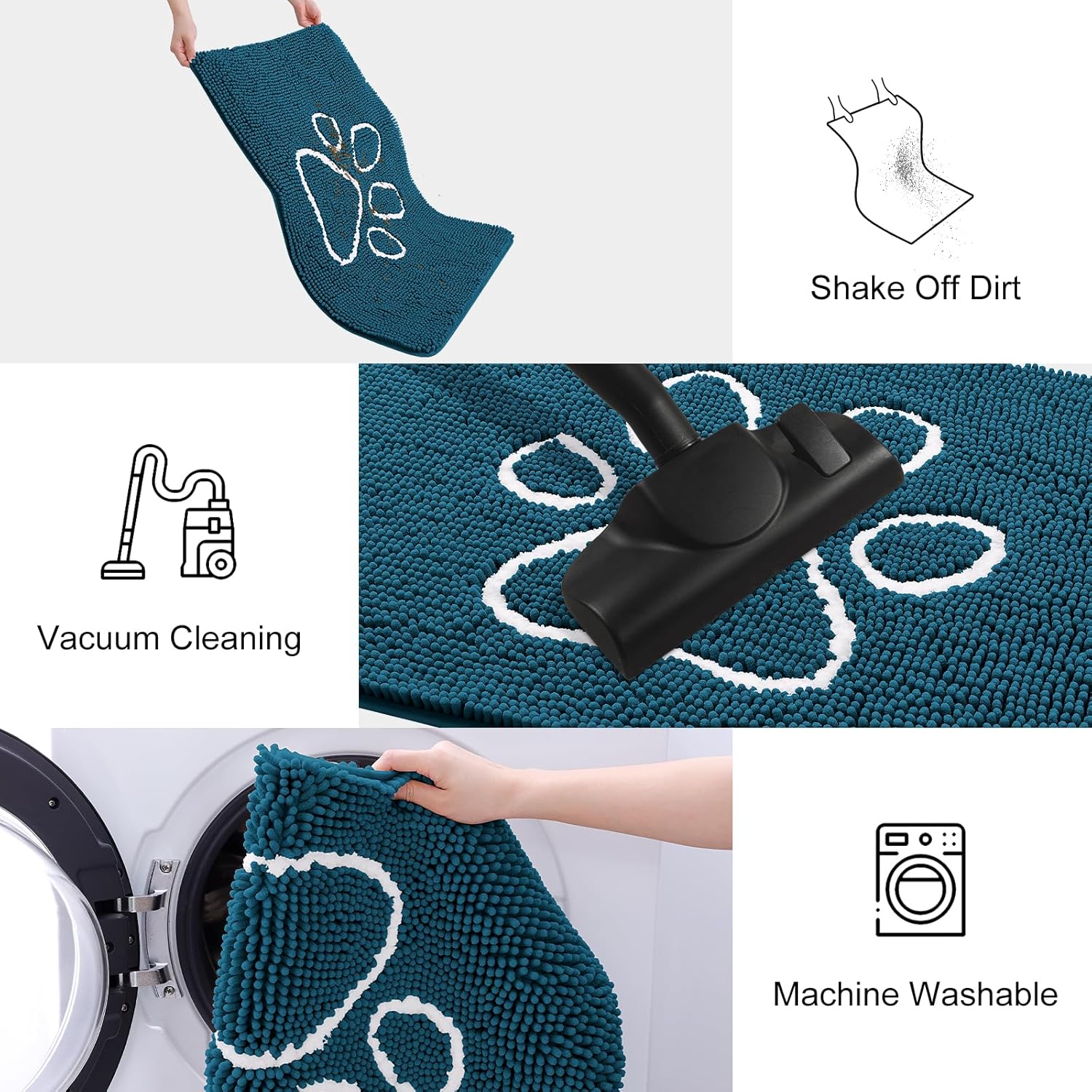 Smiry Dog Door Mat for Muddy Paws, Absorbent Dirt Trapper Non Slip Quick Dry Washable Chenille Mat for Mud Dogs, Entry Rug for Indoor and Outdoor (40x32 Inches, Atlantic Blue)