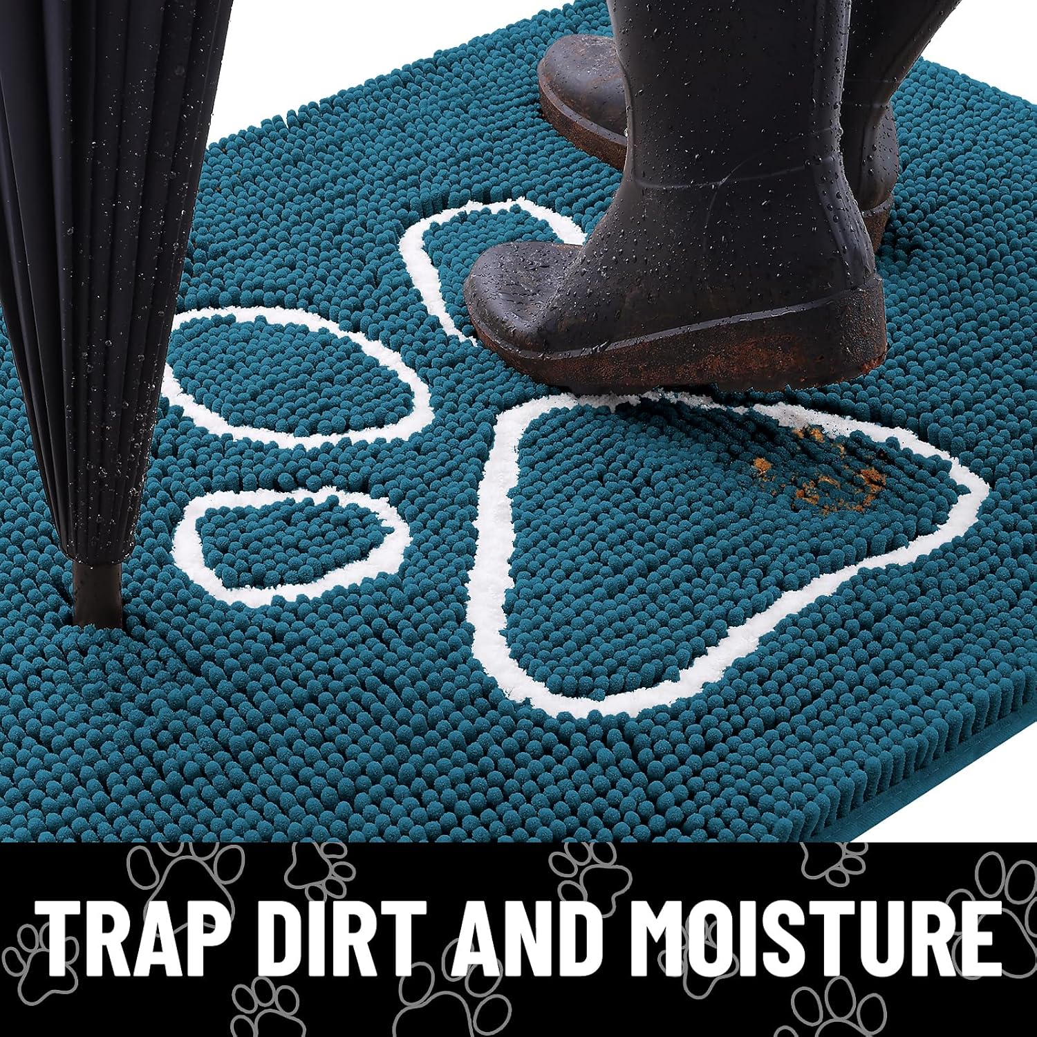 Smiry Dog Door Mat for Muddy Paws, Absorbent Dirt Trapper Non Slip Quick Dry Washable Chenille Mat for Mud Dogs, Entry Rug for Indoor and Outdoor (48x30 Inches, Atlantic Blue)